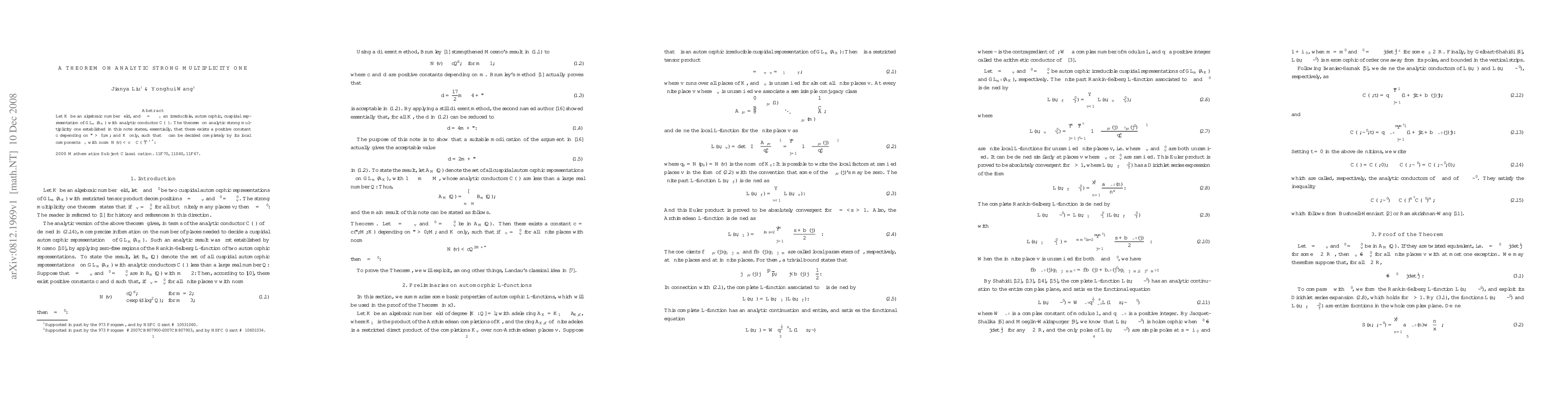 with analytic conductor $C(\pi)$. The theorem on analytic strong multiplicity