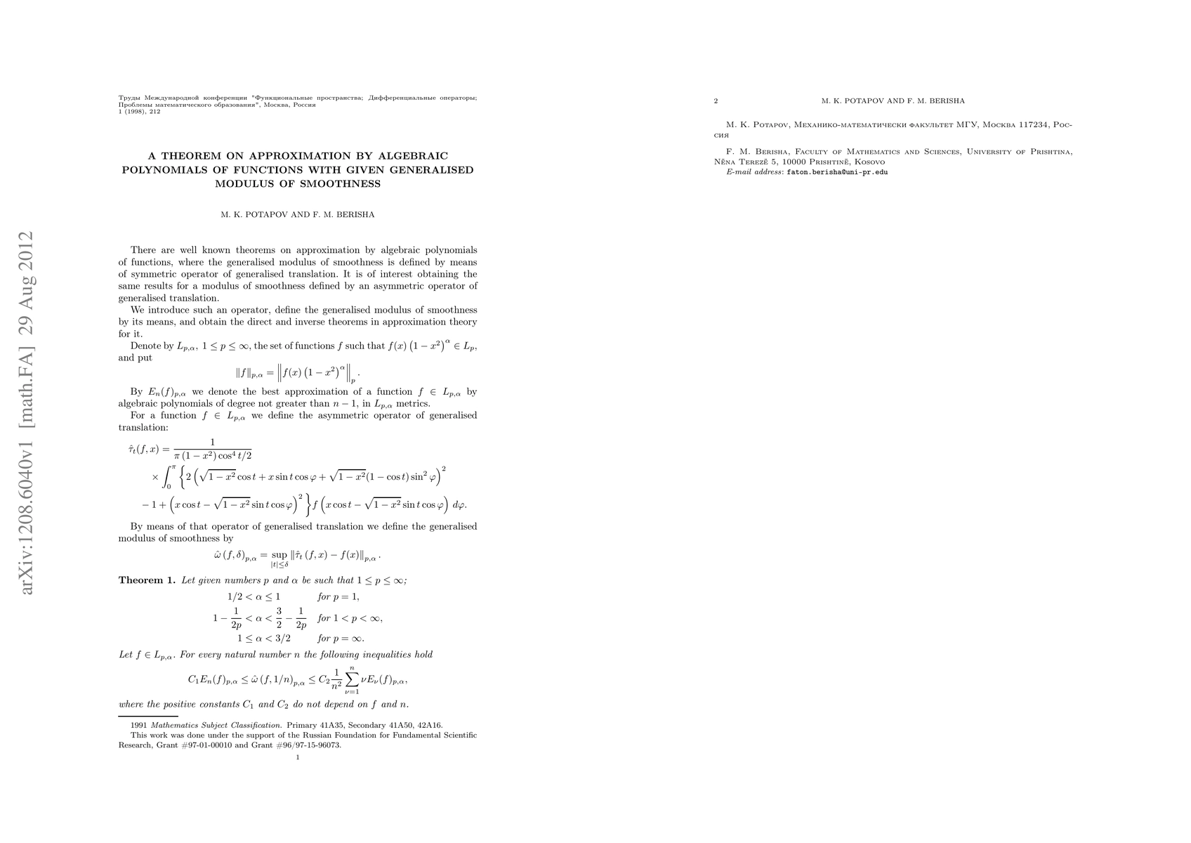Researchers introduce a new concept for generalized modulus of smoothness and develop direct and inverse theorems in approximation theory, providing insights into approximating functions with algebraic polynomials.