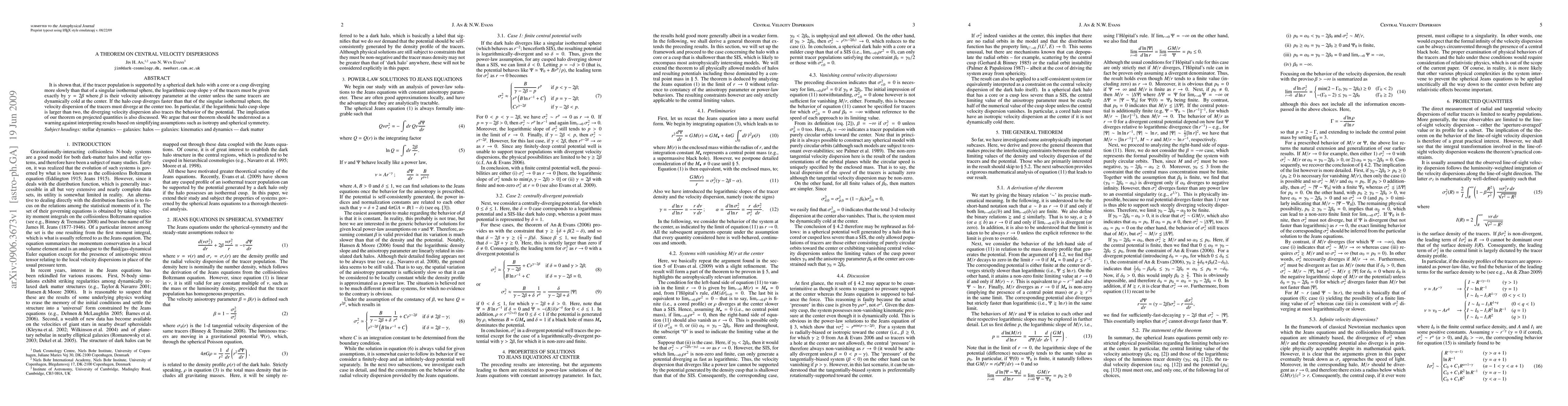 It is shown that, if the tracer population is supported by a spherical dark halo with a core or a cusp diverging more slowly than that of a singular isothermal sphere, the logarithmic cusp slope 'g' of the tracers must be given exactly by g=2b where b is their velocity anisotropy parameter at the center unless the same tracers are dynamically cold at the center. If the halo cusp diverges faster than that of the singular isothermal sphere, the velocity dispersion of the tracers must diverge at the center too. In particular, if the logarithmic halo cusp slope is larger than two, the diverging velocity dispersion also traces the behavior of the potential. The implication of our theorem on projected quantities is also discussed. We argue that our theorem should be understood as a warning against interpreting results based on simplifying assumptions such as isotropy and spherical symmetry.