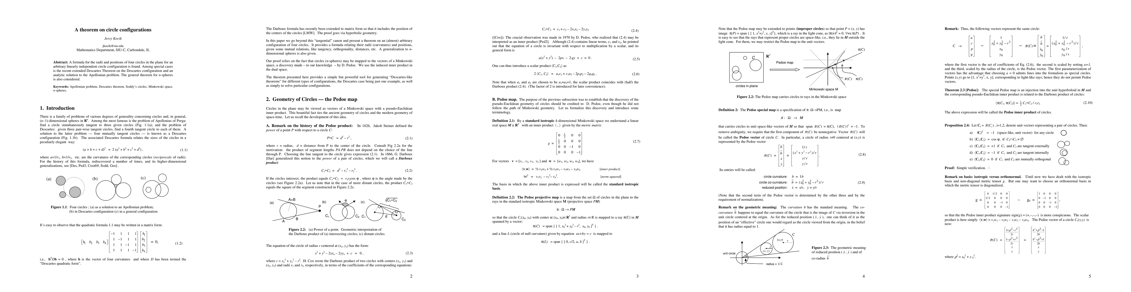 A formula for the radii and positions of four circles in the plane for an arbitrary linearly independent circle configuration is found. Among special cases is the recent extended Descartes Theorem on the Descartes configuration and an analytic solution to the Apollonian problem. The general theorem for n-spheres is also considered.