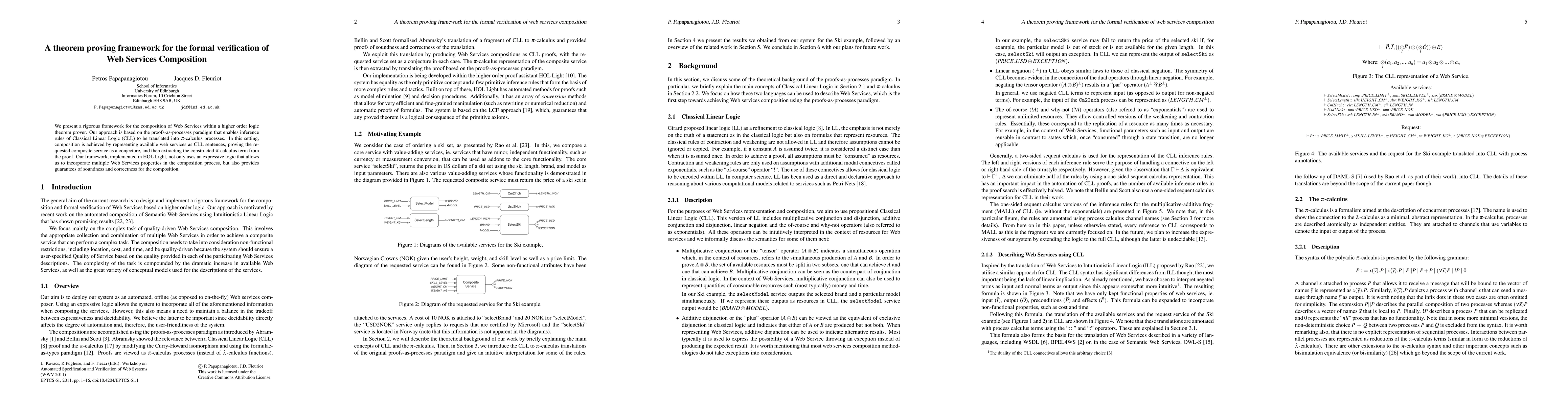 This paper introduces a framework for verifying Web Service compositions using a higher order logic theorem prover based on Classical Linear Logic and pi-calculus. The framework ensures soundness and correctness by translating inference rules into pi-calculus processes and implementing it in HOL Light.