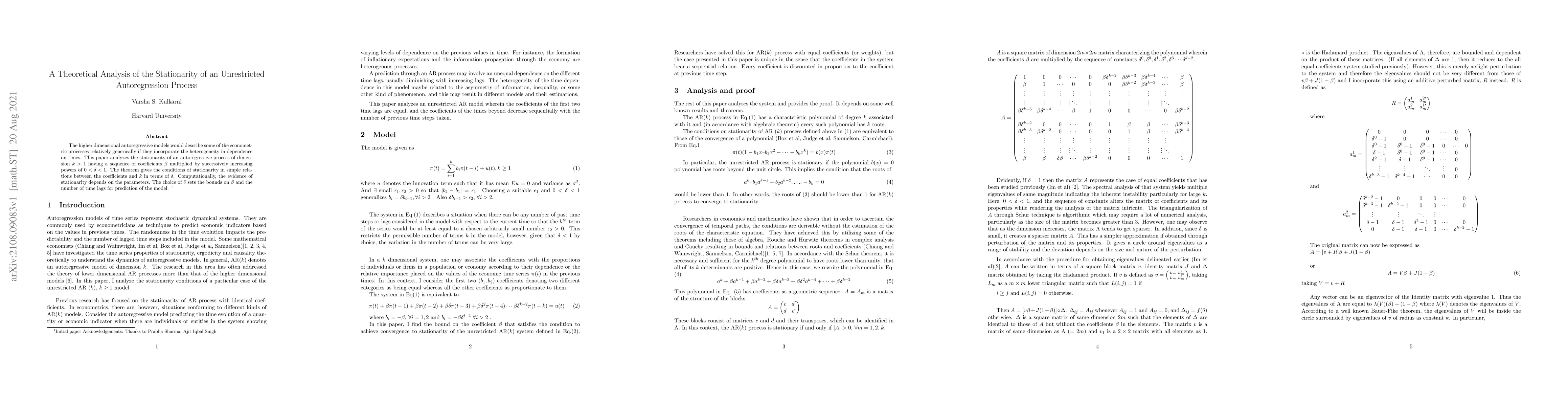 The higher dimensional autoregressive models would describe some of the econometric processes relatively generically if they incorporate the heterogeneity in dependence on times. This paper analyzes the stationarity of an autoregressive process of dimension $k>1$ having a sequence of coefficients $\beta$ multiplied by successively increasing powers of $0<\delta<1$. The theorem gives the conditions of stationarity in simple relations between the coefficients and $k$ in terms of $\delta$. Computationally, the evidence of stationarity depends on the parameters. The choice of $\delta$ sets the bounds on $\beta$ and the number of time lags for prediction of the model.