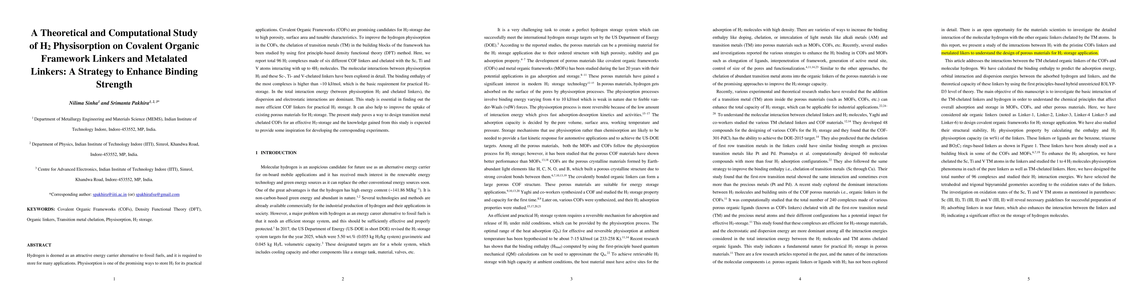 Hydrogen is deemed as an attractive energy carrier alternative to fossil fuels, and it is required to store for many applications. Physisorption is one of the promising ways to store H$_2$ for its practical applications. Covalent Organic Frameworks (COFs) are promising candidates for H$_2$-storage due to high porosity, surface area and tunable characteristics. To improve the hydrogen physisorption in the COFs, the chelation of transition metals (TM) in the building blocks of the framework has been studied by using first principle-based density functional theory (DFT) method. Here, we report total 96 H$_2$ complexes made of six different COF linkers and chelated with the Sc, Ti and V atoms interacting with up to H$_2$ molecules. The molecular interactions between physisorption H$_2$ and these Sc-, Ti- and V-chelated linkers have been explored in detail. The binding enthalpy of the most complexes is higher than ~10 kJ/mol, which is the basic requirement for practical H$_2$-storage. In the total interaction energy (between physisorption H$_2$ and chelated linkers), the dispersion and electrostatic interactions are dominant. This study is essential in finding out the more efficient COF linkers for practical H$_2$ storage. It can also help to improve the uptake of existing porous materials for H$_2$ storage. The present study paves a way to design transition metal chelated COFs for an effective H$_2$-storage and the knowledge gained from this study is expected to provide some inspiration for developing the corresponding experiments.
