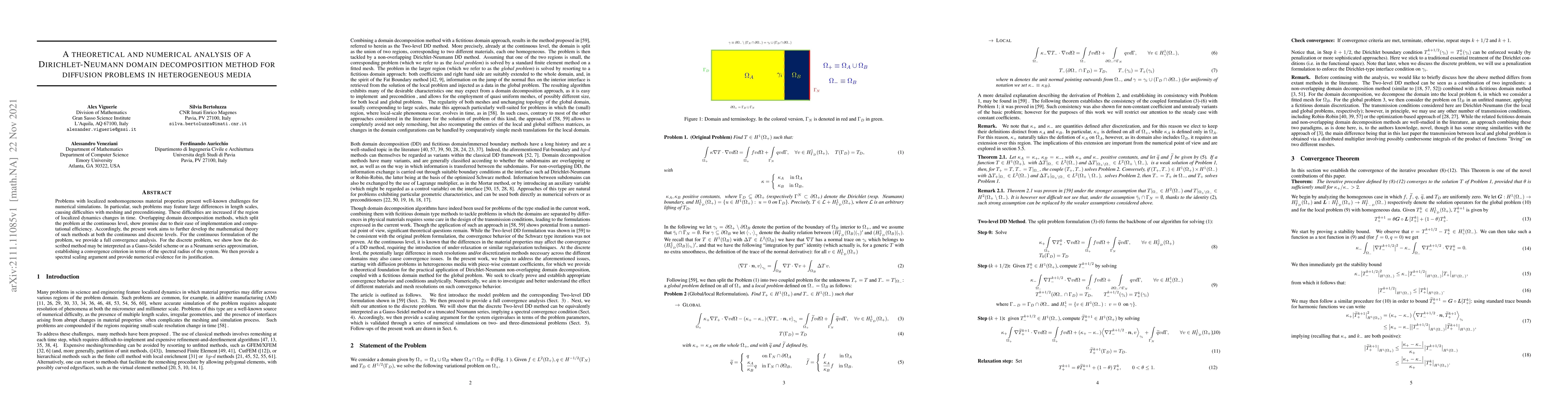 This research paper presents a theoretical and numerical analysis of a Dirichlet-Neumann domain decomposition method for diffusion problems in heterogeneous media. It offers a comprehensive convergence analysis for both continuous and discrete problem formulations, interpreting the method as a Gauss-Seidel scheme or Neumann series approximation, and establishes a convergence criterion based on the spectral radius of the system. The paper also provides a spectral scaling argument supported by numerical evidence.