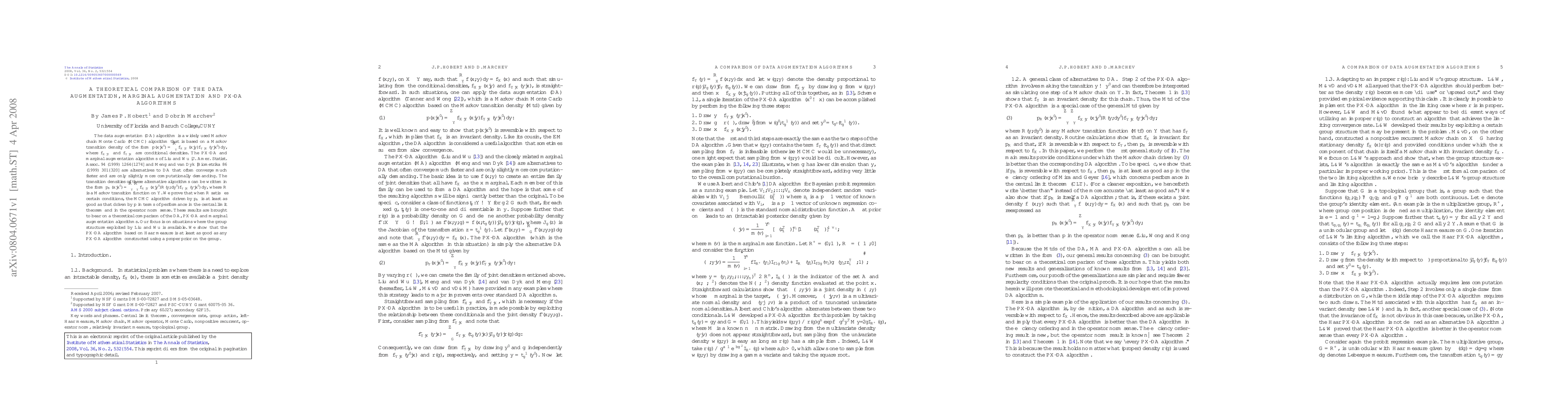This paper compares data augmentation, marginal augmentation, and PX-DA algorithms for Markov chain Monte Carlo methods, showing that PX-DA can outperform DA in certain situations.