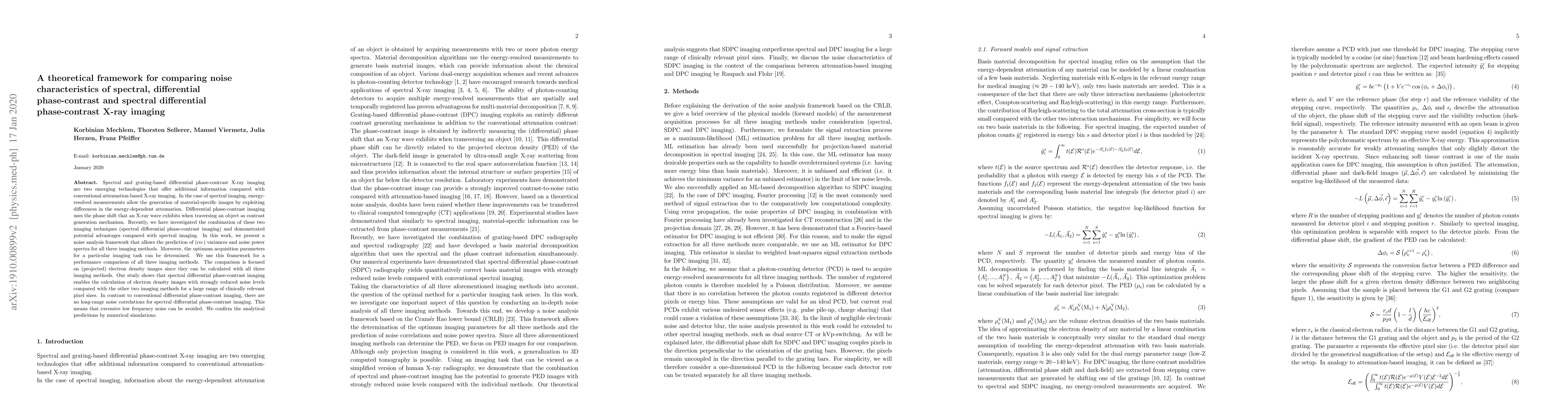 This paper presents a theoretical framework for comparing noise characteristics of spectral, differential phase-contrast, and spectral differential phase-contrast X-ray imaging methods. The study shows that spectral differential phase-contrast imaging offers significantly reduced noise levels and avoids long-range noise correlations, outperforming the other methods for electron density imaging.