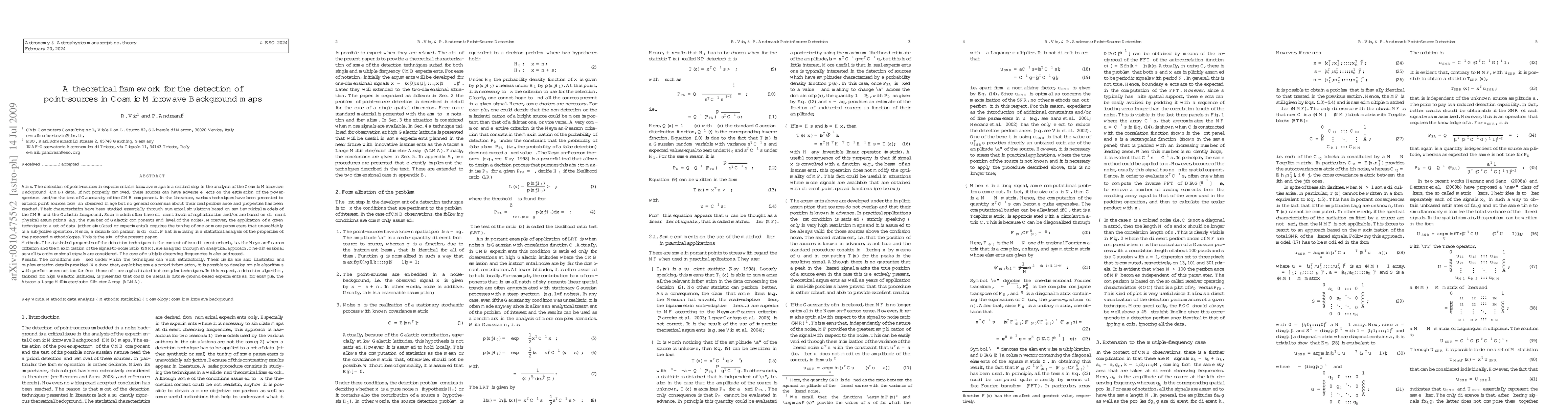 This paper proposes a theoretical framework for detecting point-sources in Cosmic Microwave Background (CMB) maps, analyzing the statistical properties of various detection techniques under the Neyman-Pearson criterion and signal-to-noise ratio maximization. It introduces a simple yet effective detection algorithm for future ground-based experiments.