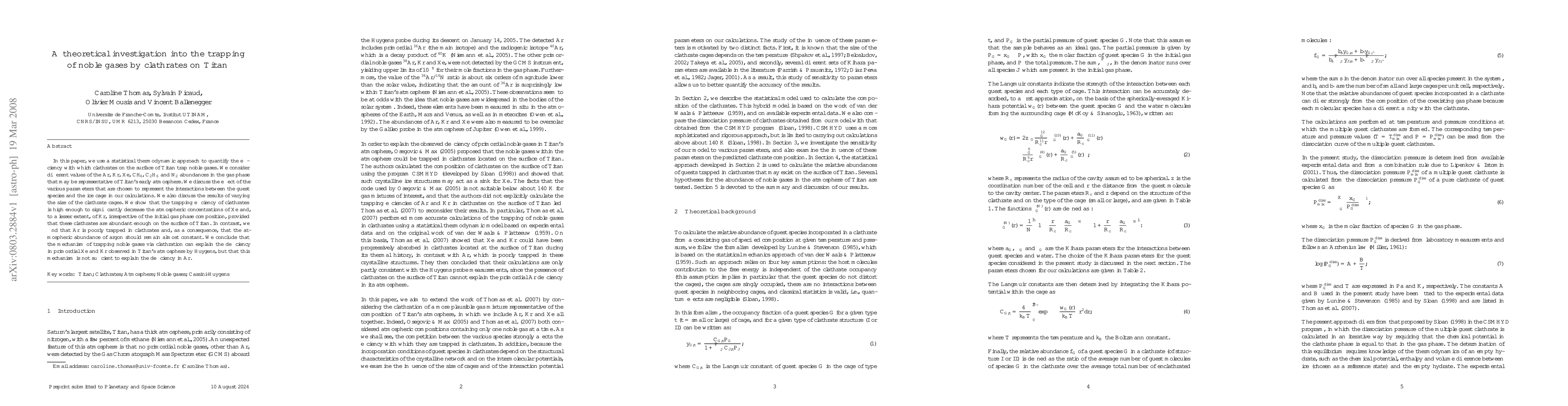 This paper employs a statistical thermodynamic approach to determine the efficiency of clathrates on Titan in trapping noble gases, finding high trapping efficiency for Xe and Kr, but poor trapping for Ar. The study concludes that clathration can explain the observed deficiencies of Xe and Kr in Titan's atmosphere but not for Ar.