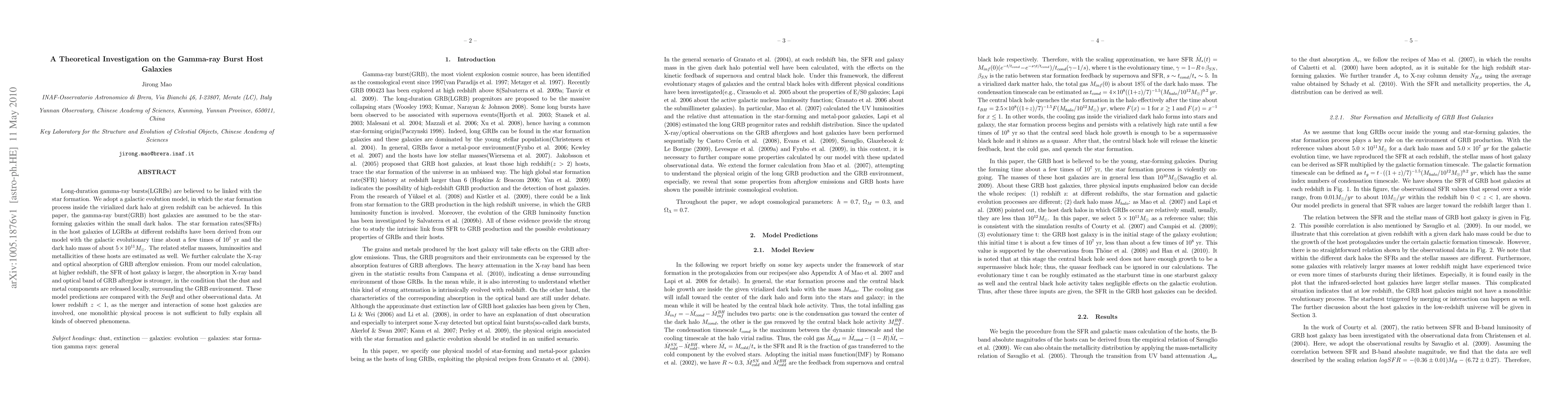 This paper investigates the star formation rates in long-duration gamma-ray burst (LGRB) host galaxies using a galactic evolution model, finding that higher redshift hosts exhibit greater star formation and stronger absorption in X-ray and optical bands. The model's predictions are compared with observational data from the Swift satellite and other sources.