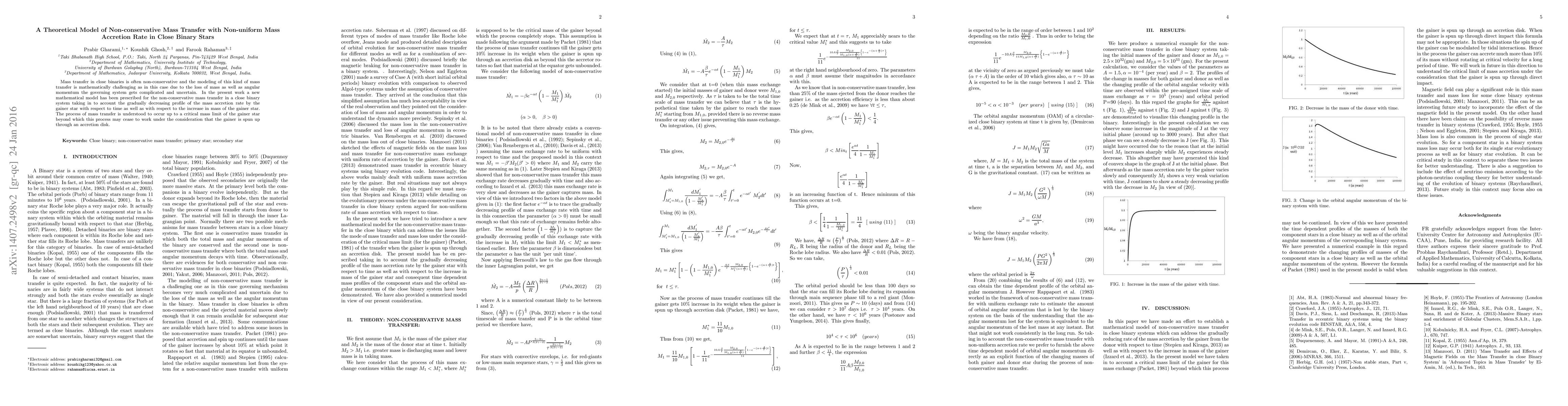 This paper presents a novel mathematical model for non-conservative mass transfer in close binary stars, considering a decreasing mass accretion rate over time. It introduces a critical mass limit beyond which mass transfer ceases.