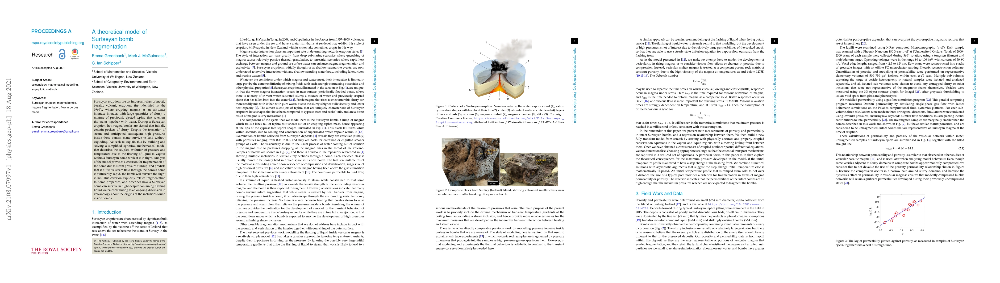 Surtseyan eruptions are an important class of mostly basaltic volcanic eruptions first identified in the 1960s, where erupting magma at an air-water interface interacts with large quantities of slurry, a mixture of previously ejected tephra that re-enters the crater together with water. During a Surtseyan eruption, hot magma bombs are ejected that initially contain pockets of slurry. Despite the formation of steam and anticipated subsequent high pressures inside these bombs, many survive to land without exploding. We seek to explain this by building and solving a simplified spherical mathematical model that describes the coupled evolution of pressure and temperature due to the flashing of liquid to vapour within a Surtseyan bomb while it is in flight. Analysis of the model provides a criterion for fragmentation of the bomb due to steam pressure buildup, and predicts that if diffusive steam flow through the porous bomb is sufficiently rapid, the bomb will survive the flight intact. This criterion explicitly relates fragmentation to bomb properties, and describes how a Surtseyan bomb can survive in flight despite containing flashing liquid water, contributing to an ongoing discussion in volcanology about the origins of the inclusions found inside bombs.