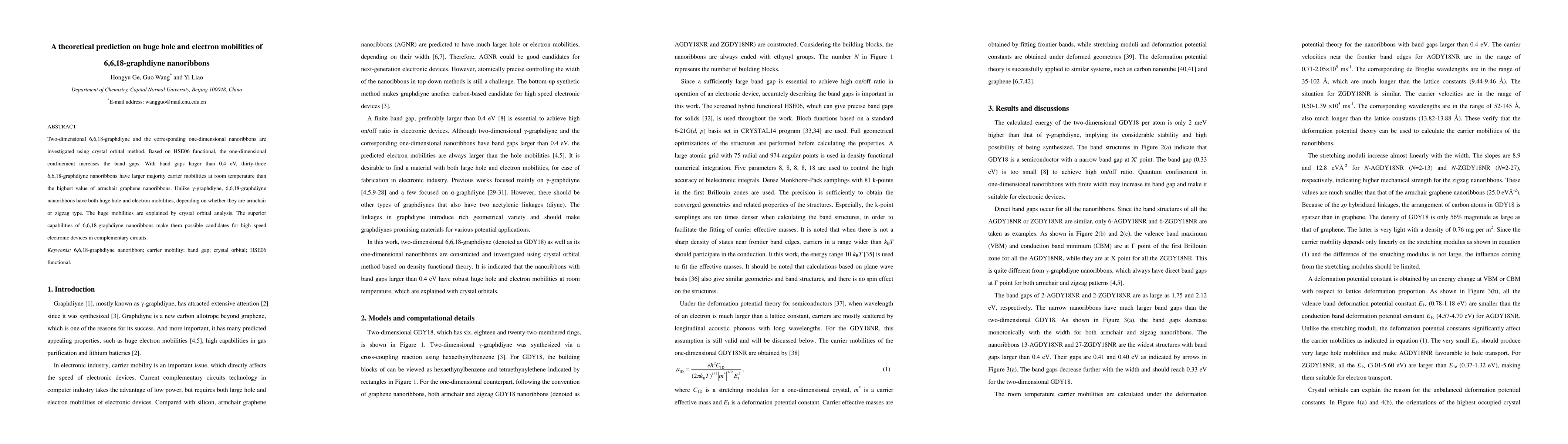 This research predicts that 6,6,18-graphdiyne nanoribbons exhibit significantly larger majority carrier mobilities than armchair graphene nanoribbons, with both hole and electron mobilities enhanced due to one-dimensional confinement, making them potential candidates for high-speed electronic devices.