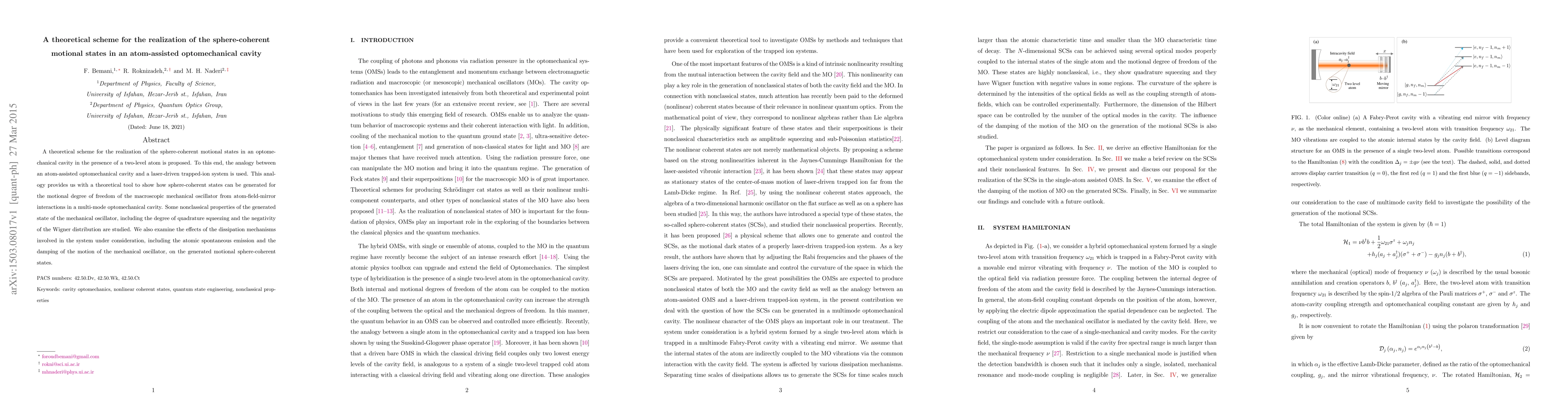 This paper proposes a theoretical scheme to generate sphere-coherent motional states in an optomechanical cavity using a two-level atom, leveraging the analogy with laser-driven trapped-ion systems. It examines nonclassical properties and the impact of dissipation mechanisms on these states.