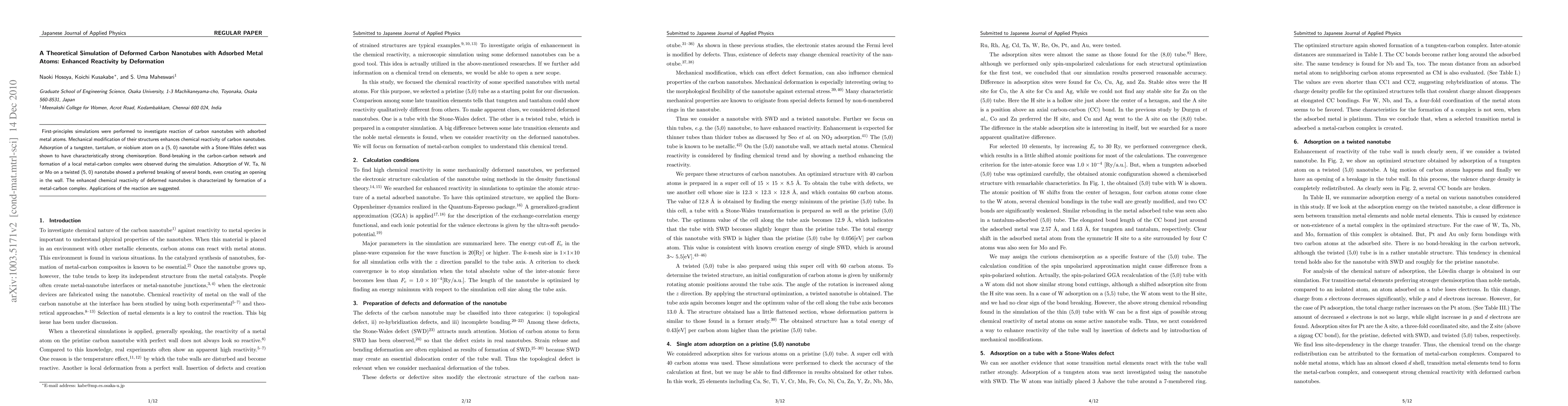 First-principles simulations reveal that deformed carbon nanotubes with adsorbed metal atoms, like tungsten, tantalum, or niobium, exhibit significantly enhanced chemical reactivity due to bond-breaking and formation of local metal-carbon complexes. This reactivity opens potential applications for these modified nanotubes.