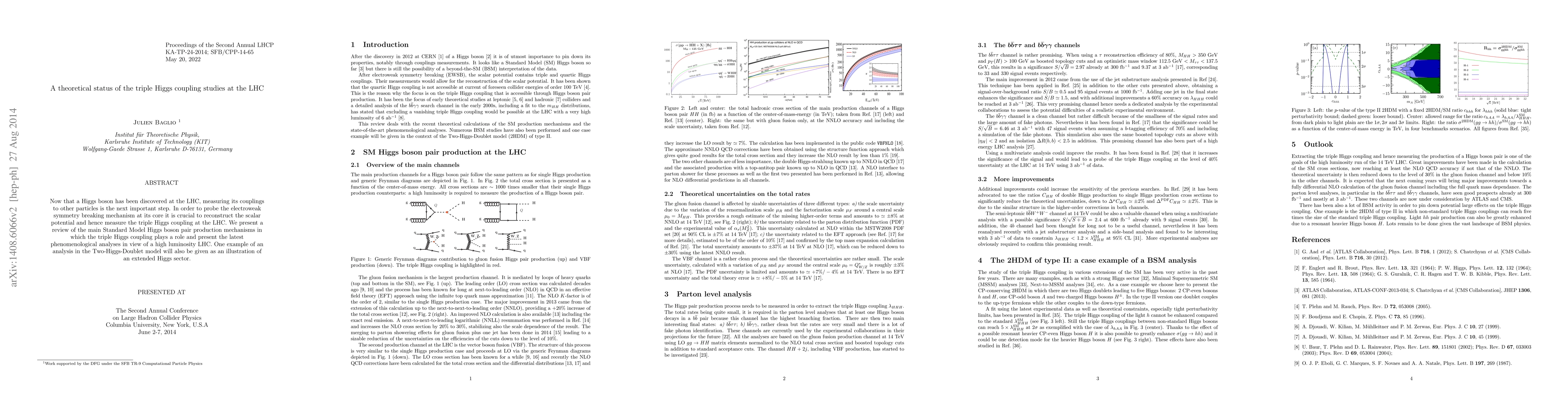 This paper reviews the theoretical status and experimental approaches for studying the triple Higgs coupling at the LHC, emphasizing its role in understanding the electroweak symmetry breaking mechanism. It discusses the main production mechanisms and presents recent analyses, including an example from the Two-Higgs-Doublet model.