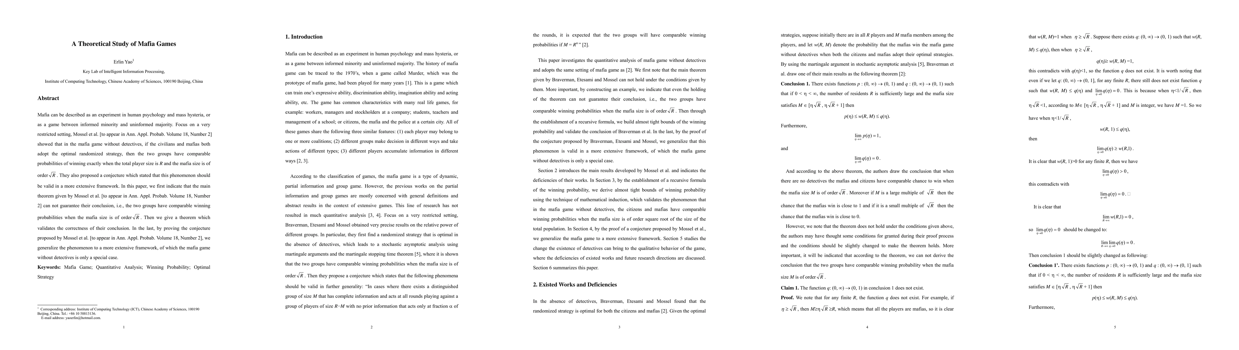 This paper critiques and extends the theoretical framework of the mafia game, demonstrating that while Mossel et al.'s main theorem does not guarantee comparable winning probabilities for civilians and mafias, a revised theorem does. The authors also validate Mossel et al.'s conjecture, generalizing the phenomenon to a broader context.