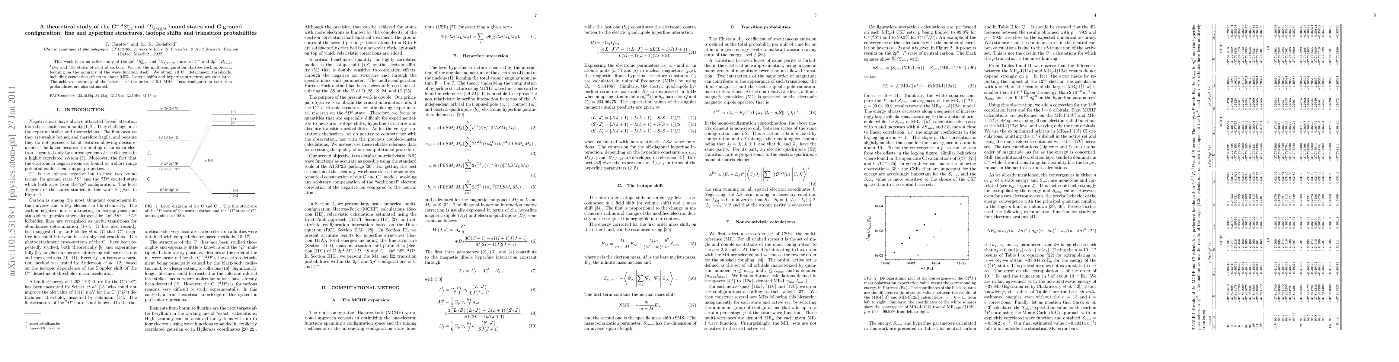 This work is an ab initio study of the 2p3 4So_3/2, and 2Do_{3/2,5/2} states of C- and 2p2 3P_{0,1,2}, 1D_2, and 1S_0 states of neutral carbon. We use the multi-configuration Hartree-Fock approach, focusing on the accuracy of the wave function itself. We obtain all C- detachment thresholds, including correlation effects to about 0.5%. Isotope shifts and hyperfine structures are calculated. The achieved accuracy of the latter is of the order of 0.1 MHz. Intra-configuration transition probabilities are also estimated.