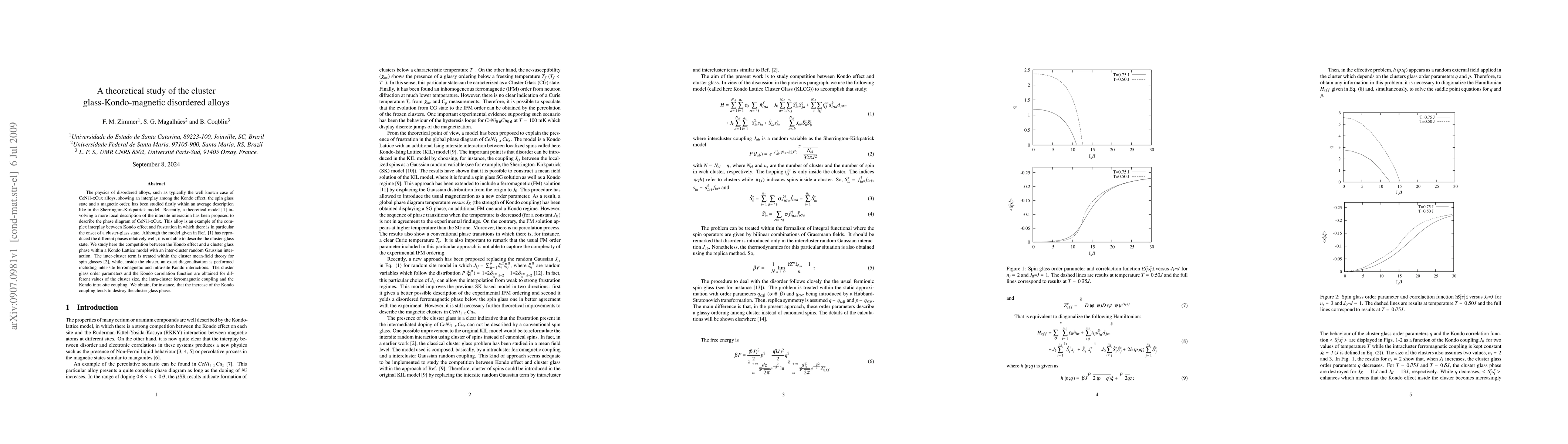 This paper investigates the interplay between the Kondo effect and the cluster glass phase in disordered alloys like CeNi1-xCux using a Kondo Lattice model with inter-cluster random Gaussian interactions. The study reveals that increasing the Kondo coupling tends to suppress the cluster glass phase.