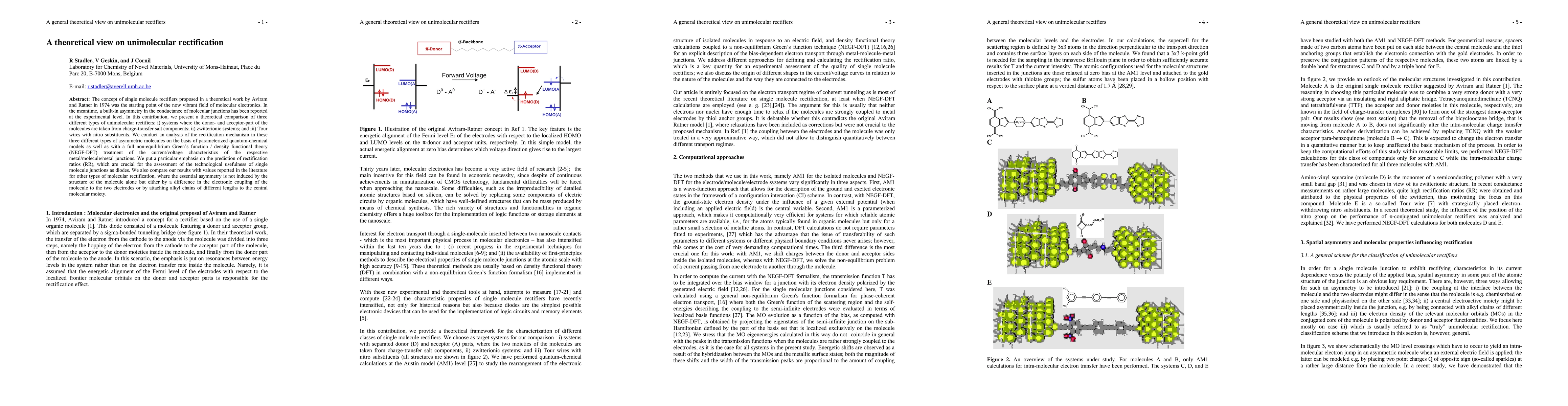 The concept of single molecule rectifiers proposed in a theoretical work by Aviram and Ratner in 1974 was the starting point of the now vibrant field of molecular electronics. In the meantime, a built-in asymmetry in the conductance of molecular junctions has been reported at the experimental level. In this contribution, we present a theoretical comparison of three different types of unimolecular rectifiers: i) systems where the donor- and acceptor-part of the molecules are taken from charge-transfer salt components; ii) zwitterionic systems; and iii) Tour wires with nitro substituents. We conduct an analysis of the rectification mechanism in these three different types of asymmetric molecules on the basis of parameterized quantum-chemical models as well as with a full non-equilibrium Greens function / density functional theory (NEGF-DFT) treatment of the current/voltage characteristics of the respective metal/molecule/metal junctions. We put a particular emphasis on the prediction of rectification ratios (RR), which are crucial for the assessment of the technological usefulness of single molecule junctions as diodes. We also compare our results with values reported in the literature for other types of molecular rectification, where the essential asymmetry is not induced by the structure of the molecule alone but either by a difference in the electronic coupling of the molecule to the two electrodes or by attaching alkyl chains of different lengths to the central molecular moiety.