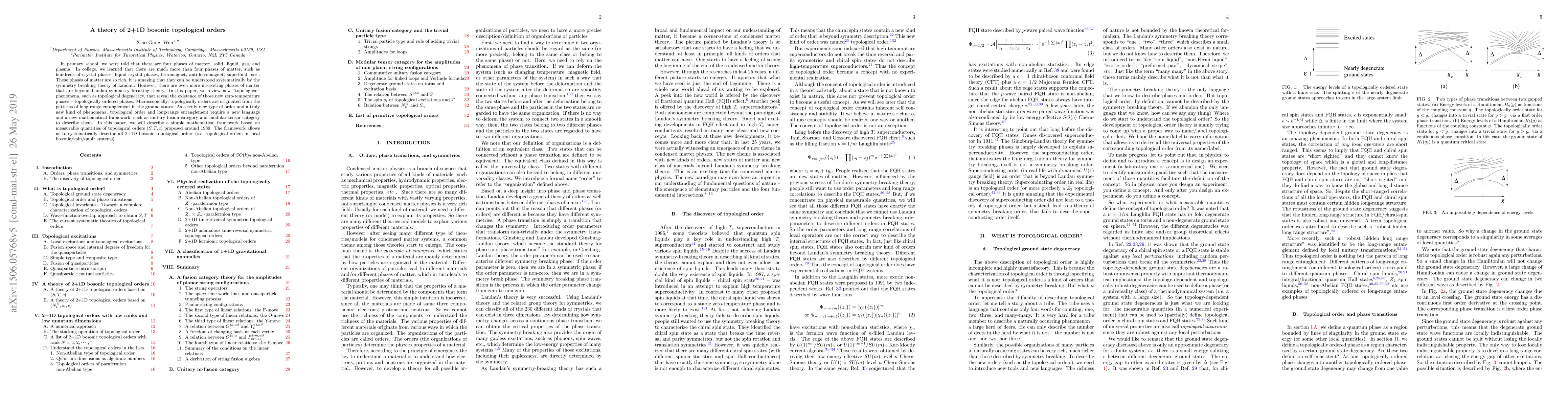 In primary school, we were told that there are four phases of matter: solid, liquid, gas, and plasma. In college, we learned that there are much more than four phases of matter, such as hundreds of crystal phases, liquid crystal phases, ferromagnet, anti-ferromagnet, superfluid, etc. Those phases of matter are so rich, it is amazing that they can be understood systematically by the symmetry breaking theory of Landau. However, there are even more interesting phases of matter that are beyond Landau symmetry breaking theory. In this paper, we review new "topological" phenomena, such as topological degeneracy, that reveal the existence of those new zero-temperature phases -- topologically ordered phases. Microscopically, topologically orders are originated from the patterns of long-range entanglement in the ground states. As a truly new type of order and a truly new kind of phenomena, topological order and long-range entanglement require a new language and a new mathematical framework, such as unitary fusion category and modular tensor category to describe them. In this paper, we will describe a simple mathematical framework based on measurable quantities of topological orders $(S,T,c)$ proposed around 1989. The framework allows us to systematically describe/classify 2+1D topological orders (ie topological orders in local bosonic/spin/qubit systems)..