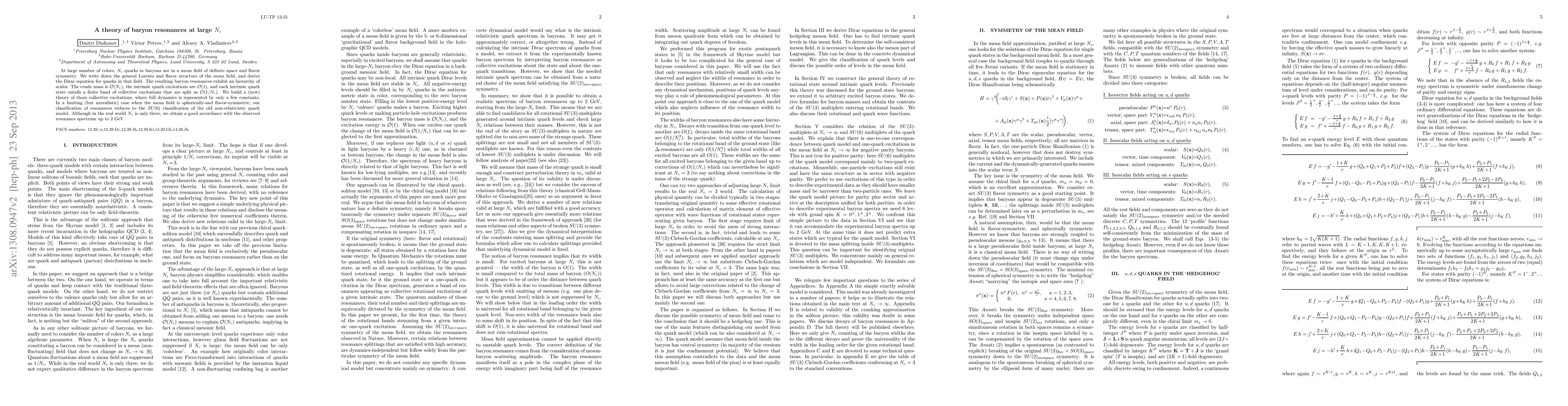 At large number of colors, N_c quarks in baryons are in a mean field of definite space and flavor symmetry. We write down the general Lorentz and flavor structure of the mean field, and derive the Dirac equation for quarks in that field. The resulting baryon resonances exhibit an hierarchy of scales: The crude mass is O(N_c), the intrinsic quark excitations are O(1), and each intrinsic quark state entails a finite band of collective excitations that are split as O(1/N_c). We build a (new) theory of those collective excitations, where full dynamics is represented by only a few constants. In a limiting (but unrealistic) case when the mean field is spherically-and flavor-symmetric, our classification of resonances reduces to the SU(6) classification of the old non-relativistic quark model. Although in the real world N_c is only three, we obtain a good accordance with the observed resonance spectrum up to 2 GeV.