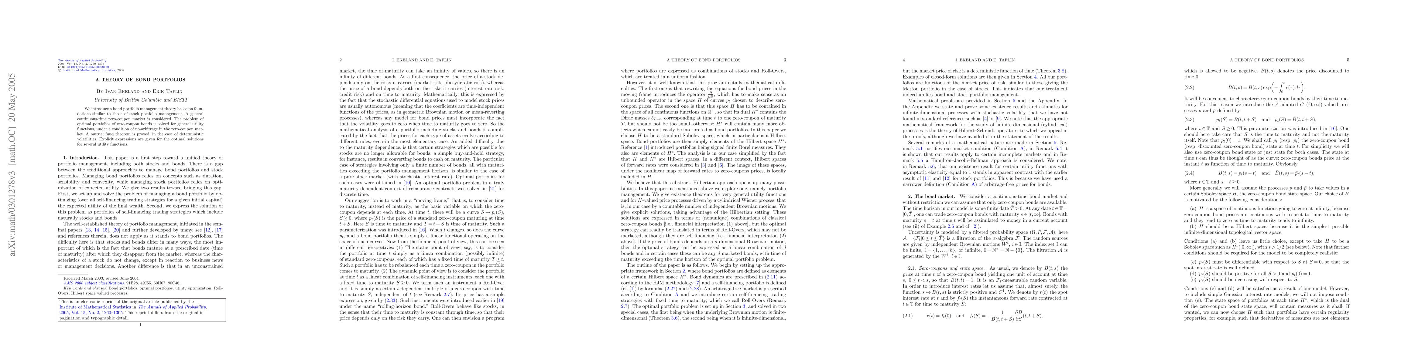 Researchers develop a bond portfolio management theory that optimizes zero-coupon bonds for various utility functions, leveraging concepts similar to stock portfolio management, with implications for risk management and mutual fund strategies.