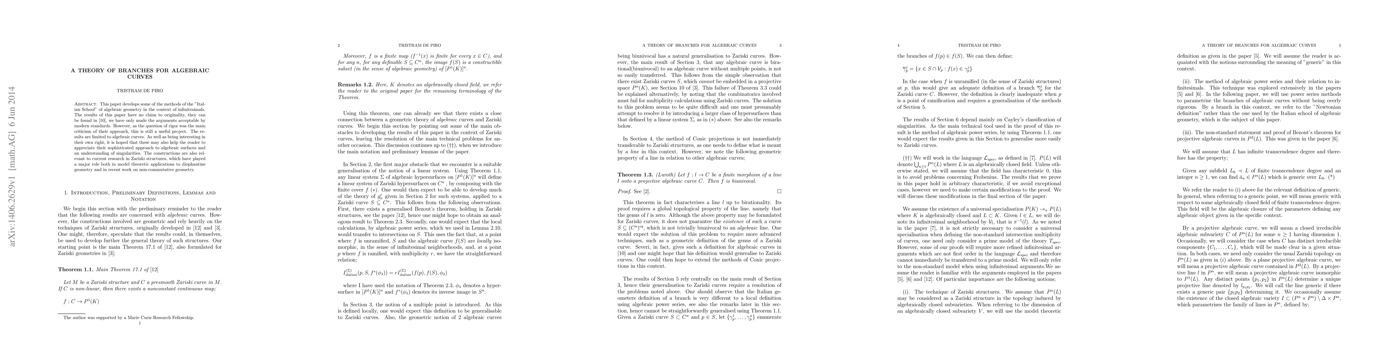 This paper develops some of the methods of the "Italian School" of algebraic geometry in the context of infinitesimals. The results of this paper have no claim to originality, they can be found in Severi, we have only made the arguments acceptable by modern standards. However, as the question of rigor was the main criticism of their approach, this is still a useful project. The results are limited to algebraic curves. As well as being interesting in their own right, it is hoped that these may also help the reader to appreciate their sophisticated approach to algebraic surfaces and an understanding of singularities. The constructions are also relevant to current research in Zariski structures, which have played a major role both in model theoretic applications to diophantine geometry and in recent work on non-commutative geometry.