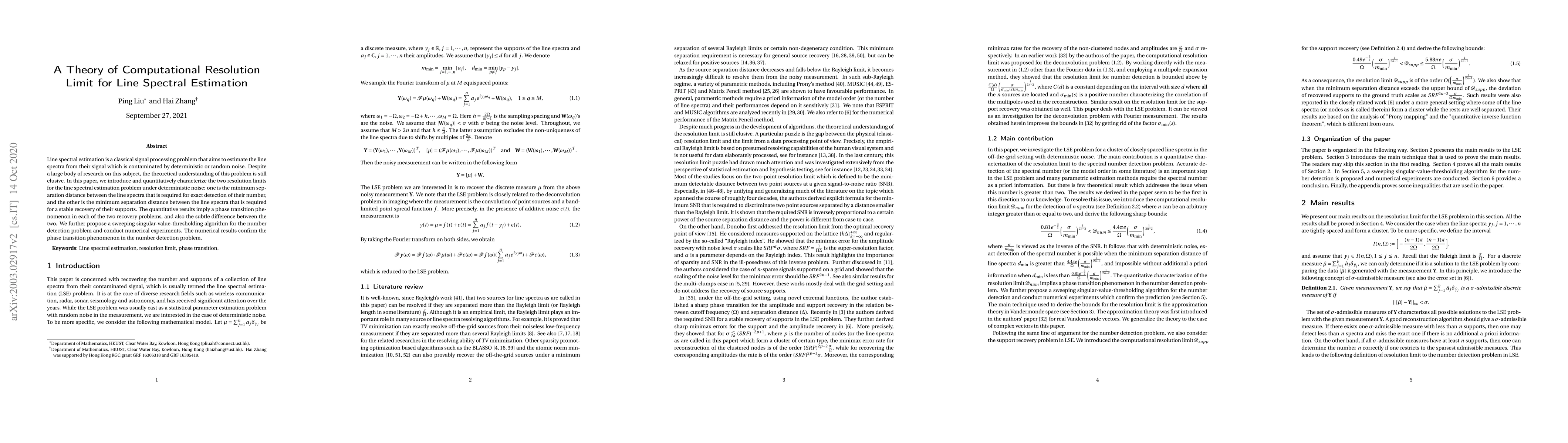 This paper introduces two computational resolution limits for line spectral estimation under deterministic noise, identifying minimum separation distances for exact detection and stable recovery. It proposes a novel algorithm and confirms a phase transition phenomenon through numerical experiments.