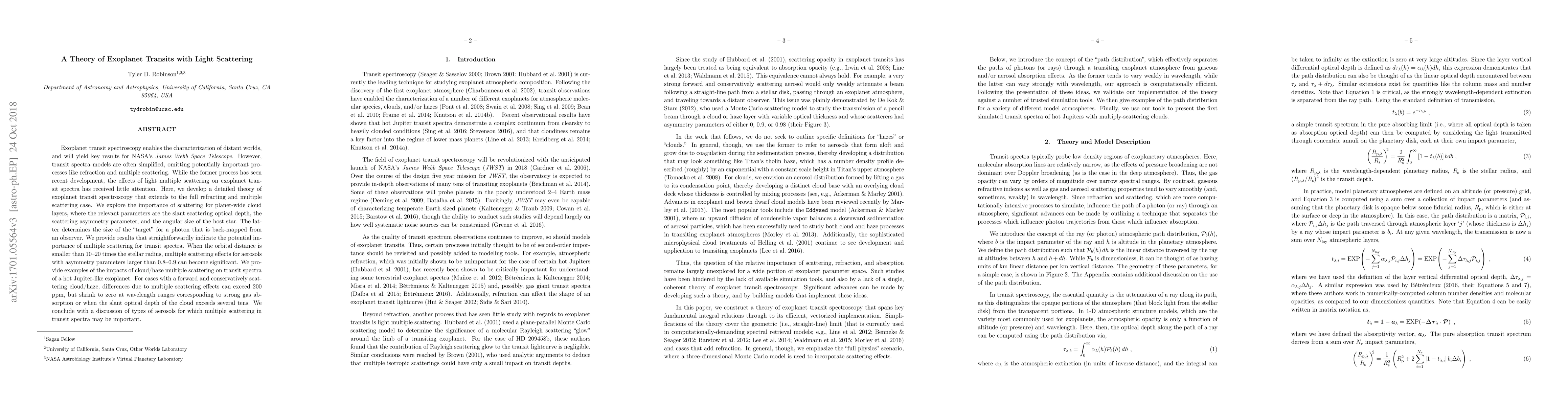 This paper develops a comprehensive theory for exoplanet transit spectroscopy, incorporating light scattering effects that have been previously overlooked. It highlights the significance of multiple scattering in planet-wide cloud layers, especially for hot Jupiter-like exoplanets, where the effects can be substantial under certain conditions.