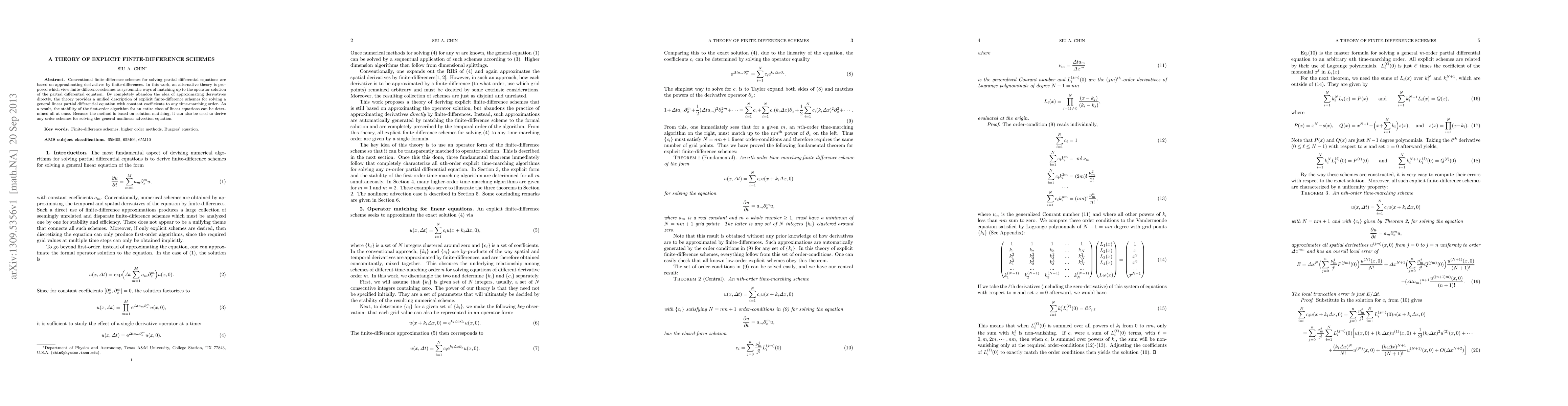 This paper proposes a novel theory for explicit finite-difference schemes that views them as methods for matching the operator solution of partial differential equations, rather than traditional derivative approximations. This approach unifies the description of schemes for linear equations and enables the determination of stability for an entire class of linear equations simultaneously.