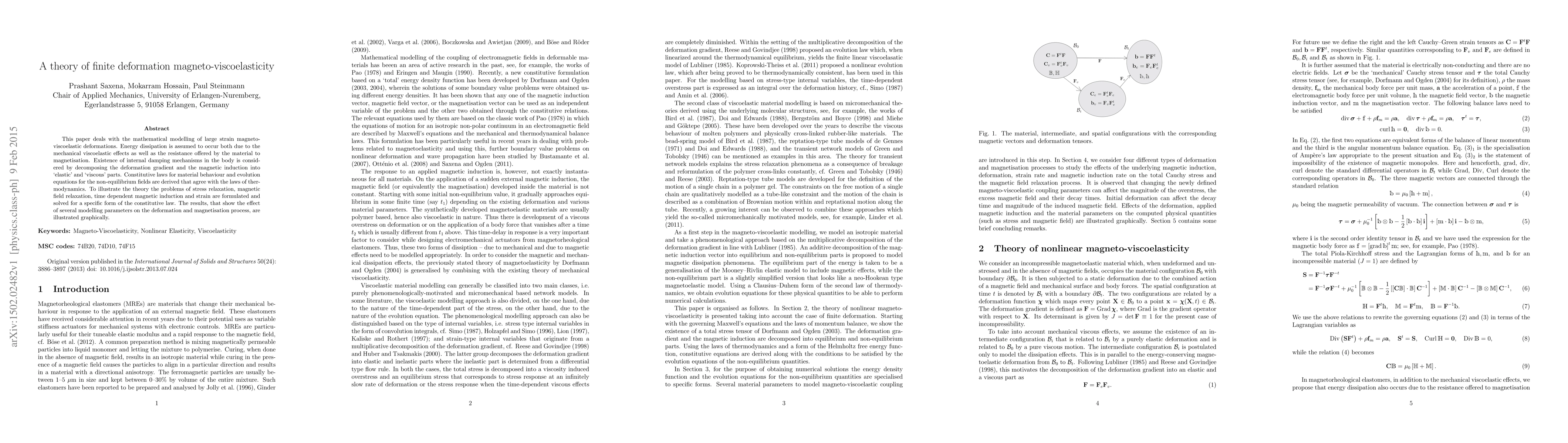 Researchers develop a theory for large strain magneto-viscoelastic deformations, considering energy dissipation from both mechanical effects and material resistance to magnetization. The model is validated through examples of stress relaxation, magnetic field relaxation, and strain calculations.