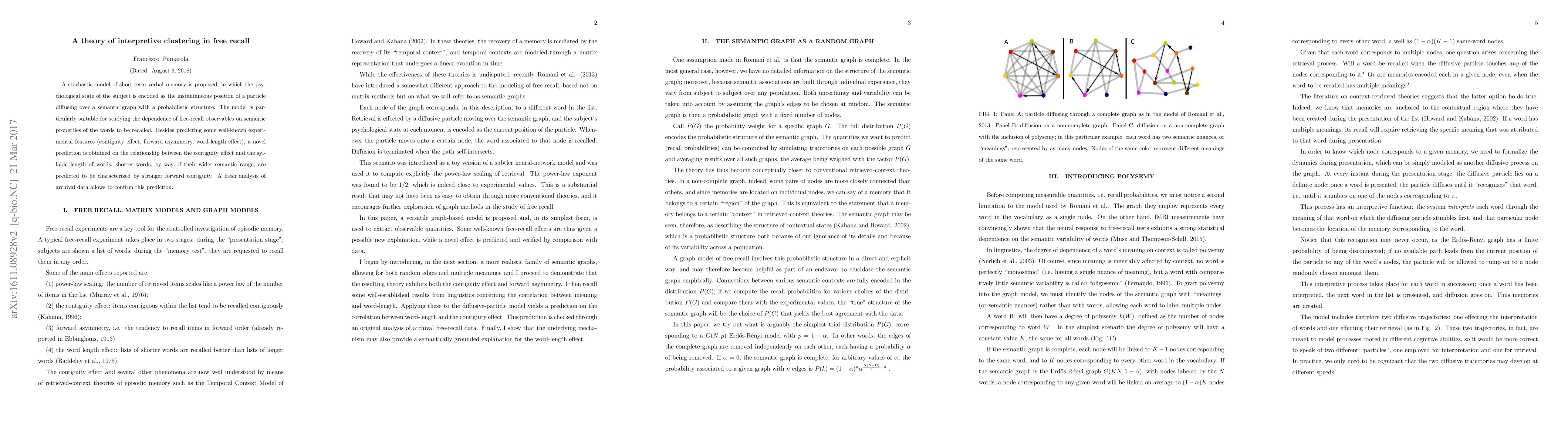 This paper proposes a stochastic model for short-term verbal memory where the subject's psychological state is modeled by a particle diffusing over a semantic graph. The model predicts known recall effects and introduces a novel prediction about the relationship between word length and contiguity effect, which is confirmed through a reanalysis of archival data.