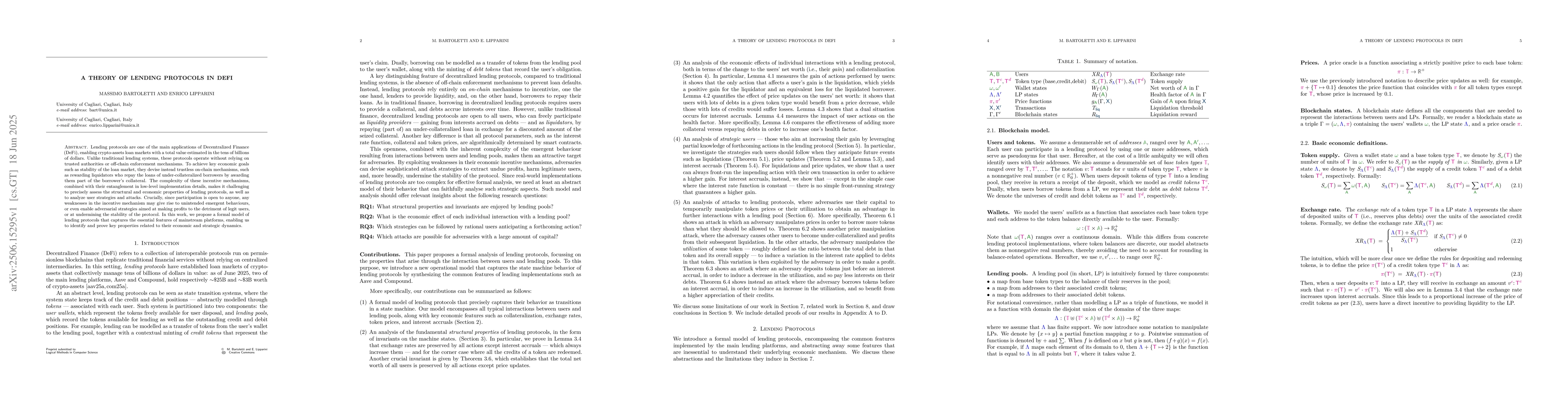 Lending protocols are one of the main applications of Decentralized Finance (DeFi), enabling crypto-assets loan markets with a total value estimated in the tens of billions of dollars. Unlike traditional lending systems, these protocols operate without relying on trusted authorities or off-chain enforcement mechanisms. To achieve key economic goals such as stability of the loan market, they devise instead trustless on-chain mechanisms, such as rewarding liquidators who repay the loans of under-collateralized borrowers by awarding them part of the borrower's collateral. The complexity of these incentive mechanisms, combined with their entanglement in low-level implementation details, makes it challenging to precisely assess the structural and economic properties of lending protocols, as well as to analyze user strategies and attacks. Crucially, since participation is open to anyone, any weaknesses in the incentive mechanism may give rise to unintended emergent behaviours, or even enable adversarial strategies aimed at making profits to the detriment of legit users, or at undermining the stability of the protocol. In this work, we propose a formal model of lending protocols that captures the essential features of mainstream platforms, enabling us to identify and prove key properties related to their economic and strategic dynamics.