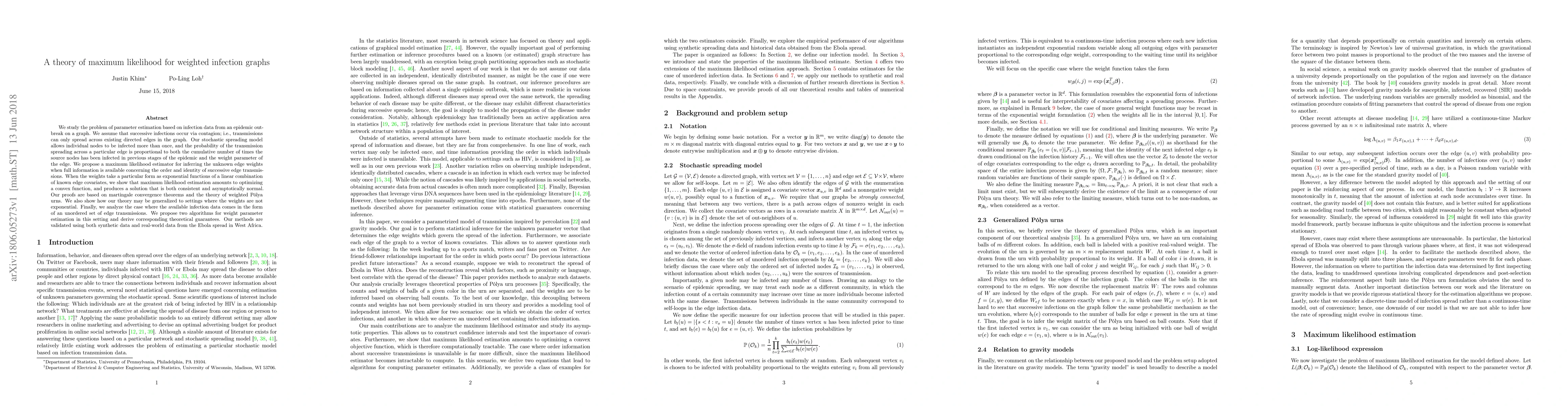 Researchers develop a theory for estimating edge weights in graph-based infection models, showing that maximum likelihood estimation can produce consistent and asymptotically normal results even when weights are not exponential.