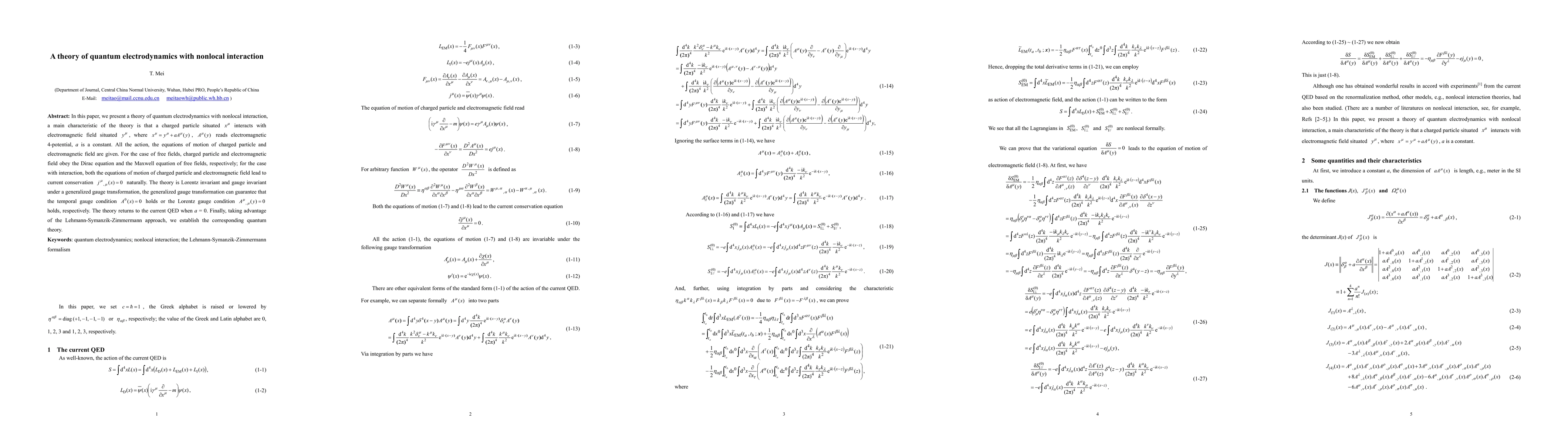 This paper proposes a nonlocal quantum electrodynamics theory where charged particles interact with electromagnetic fields through a nonlocal interaction term. The theory maintains Lorentz and gauge invariance and naturally leads to current conservation, reverting to standard QED when the nonlocal parameter is zero. A quantum version is established using the Lehmann-Symanzik-Zimmermann approach.