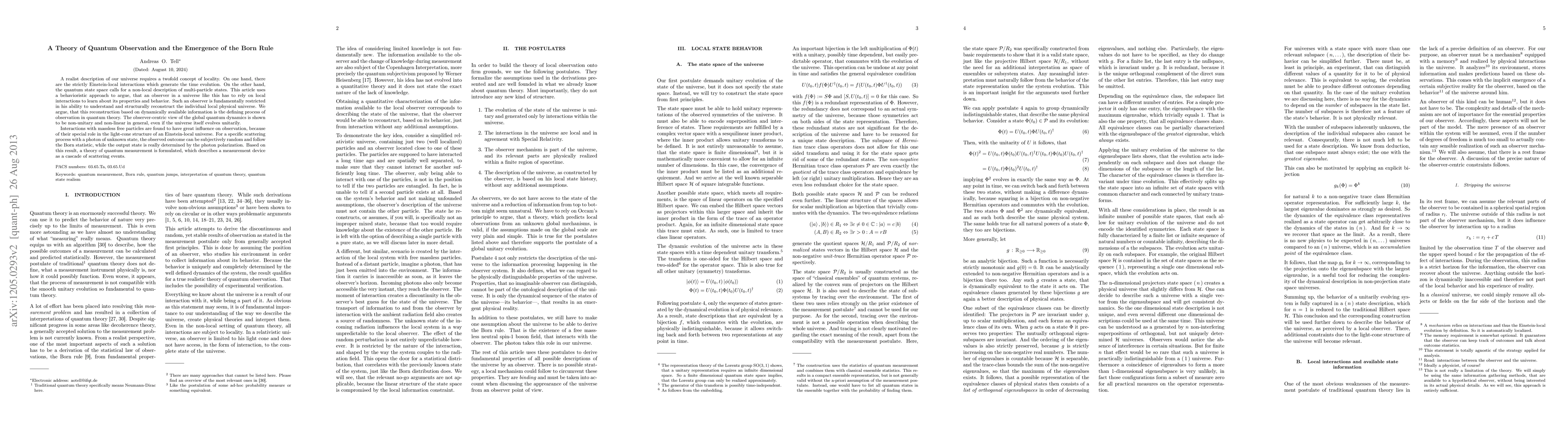 A realist description of our universe requires a twofold concept of locality. On one hand, there are the strictly Einstein-local interactions which generate the time evolution. On the other hand, the quantum state space calls for a non-local description of multi-particle states. This article uses a behavioristic approach to argue, that an observer in a universe like this has to rely on local interactions to learn about its properties and behavior. Such an observer is fundamentally restricted in his ability to understand and structurally reconstruct the individual local physical universe. We argue, that this reconstruction based on dynamically available information is the defining process of observation in quantum theory. The observer-centric view of the global quantum dynamics is shown to be non-unitary and non-linear in general, even if the universe itself evolves unitarily. Interactions with massless free particles are found to have great influence on observation, because of their special role in the light-cone structure of an Einstein-local universe. For a specific scattering process with a photon of unknown state, the observed outcome can be subjectively random and follow the Born statistic, while the output state is really determined by the photon polarization. Based on this result, a theory of quantum measurement is formulated, which describes a measurement device as a cascade of scattering events.