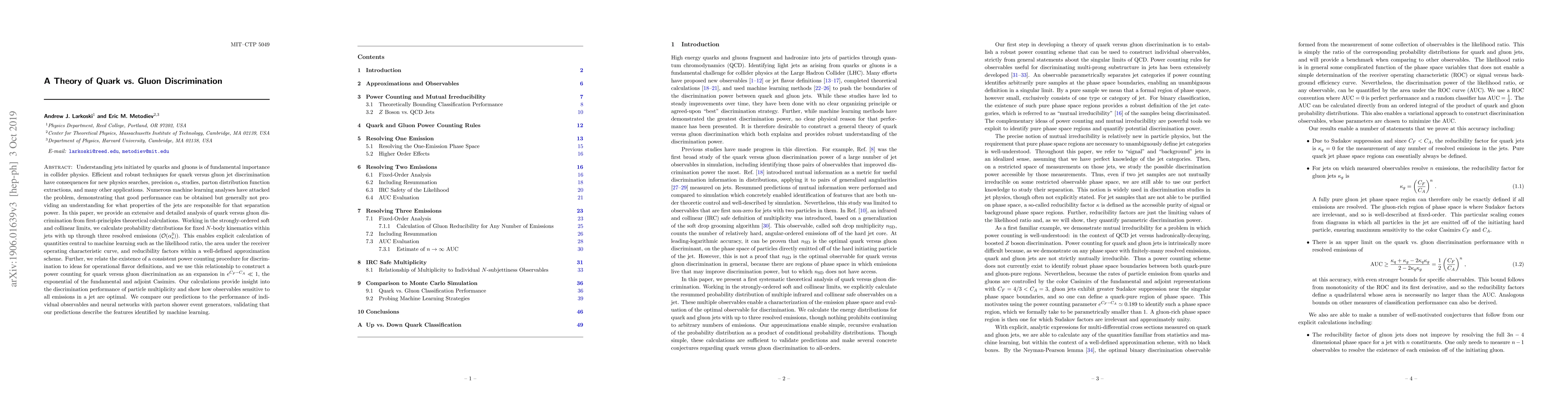 This paper develops a theoretical framework for distinguishing quark-initiated jets from gluon-initiated jets in collider physics, using first-principles calculations in the soft and collinear limits. It provides insights into the optimal observables for discrimination, validating these predictions against machine learning techniques and parton shower event generators.