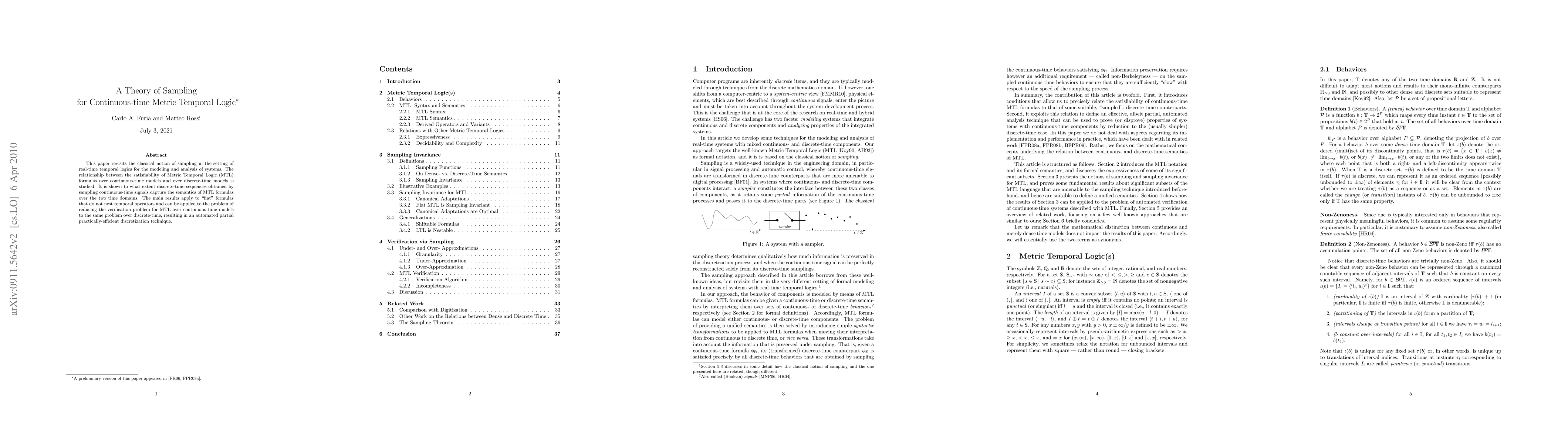 This paper revisits the classical notion of sampling in the setting of real-time temporal logics for the modeling and analysis of systems. The relationship between the satisfiability of Metric Temporal Logic (MTL) formulas over continuous-time models and over discrete-time models is studied. It is shown to what extent discrete-time sequences obtained by sampling continuous-time signals capture the semantics of MTL formulas over the two time domains. The main results apply to "flat" formulas that do not nest temporal operators and can be applied to the problem of reducing the verification problem for MTL over continuous-time models to the same problem over discrete-time, resulting in an automated partial practically-efficient discretization technique.