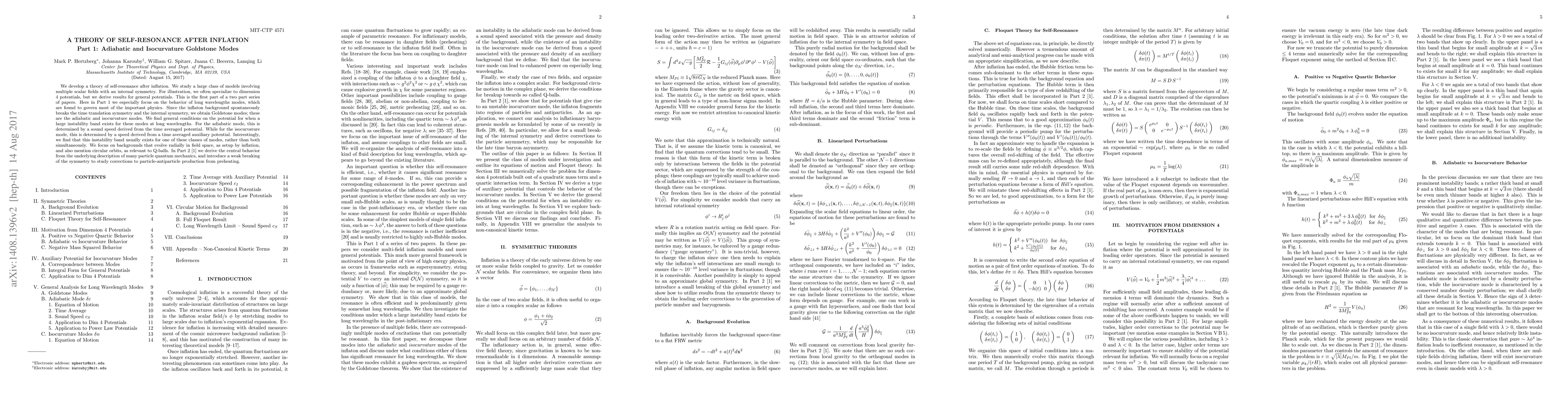 We develop a theory of self-resonance after inflation. We study a large class of models involving multiple scalar fields with an internal symmetry. For illustration, we often specialize to dimension 4 potentials, but we derive results for general potentials. This is the first part of a two part series of papers. Here in Part 1 we especially focus on the behavior of long wavelengths modes, which are found to govern most of the important physics. Since the inflaton background spontaneously breaks the time translation symmetry and the internal symmetry, we obtain Goldstone modes; these are the adiabatic and isocurvature modes. We find general conditions on the potential for when a large instability band exists for these modes at long wavelengths. For the adiabatic mode, this is determined by a sound speed derived from the time averaged potential. While for the isocurvature mode, this is determined by a speed derived from a time averaged auxiliary potential. Interestingly, we find that this instability band usually exists for one of these classes of modes, rather than both simultaneously. We focus on backgrounds that evolve radially in field space, as setup by inflation, and also mention circular orbits, as relevant to Q-balls. In Part 2 [1] we derive the central behavior from the underlying description of many particle quantum mechanics, and introduce a weak breaking of the symmetry to study corrections to particle-antiparticle production from preheating.