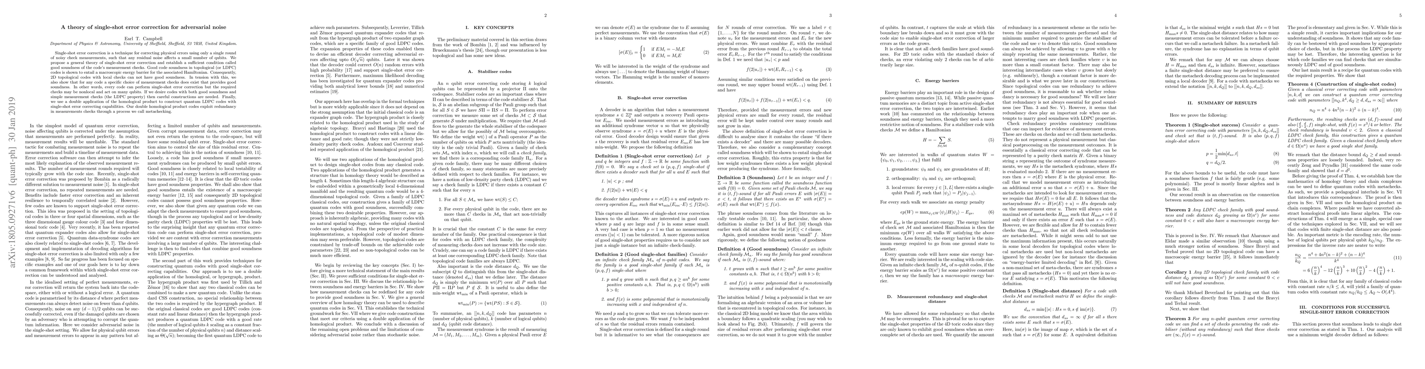 This paper proposes a theory for single-shot error correction in quantum systems, demonstrating that while 2D topological codes can't achieve good soundness with local checks, any code can perform single-shot error correction with nonlocal checks. It introduces quantum LDPC codes using a double homological product to achieve this capability.