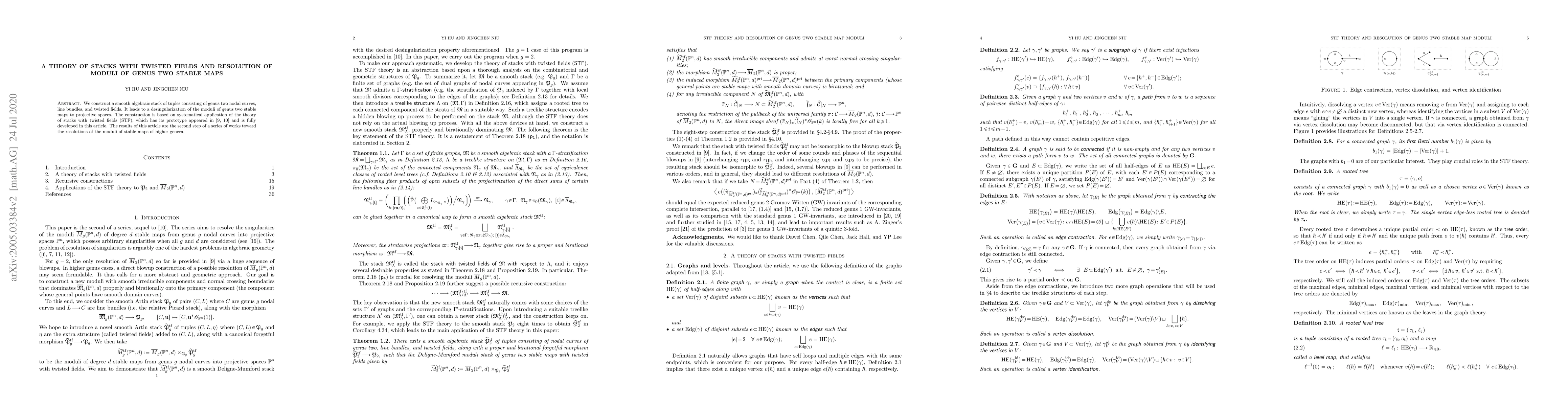 This paper constructs a smooth algebraic stack for genus two nodal curves, line bundles, and twisted fields, enabling desingularization of the moduli space of genus two stable maps. This builds on the theory of stacks with twisted fields, aiming towards resolving moduli of stable maps for higher genera.