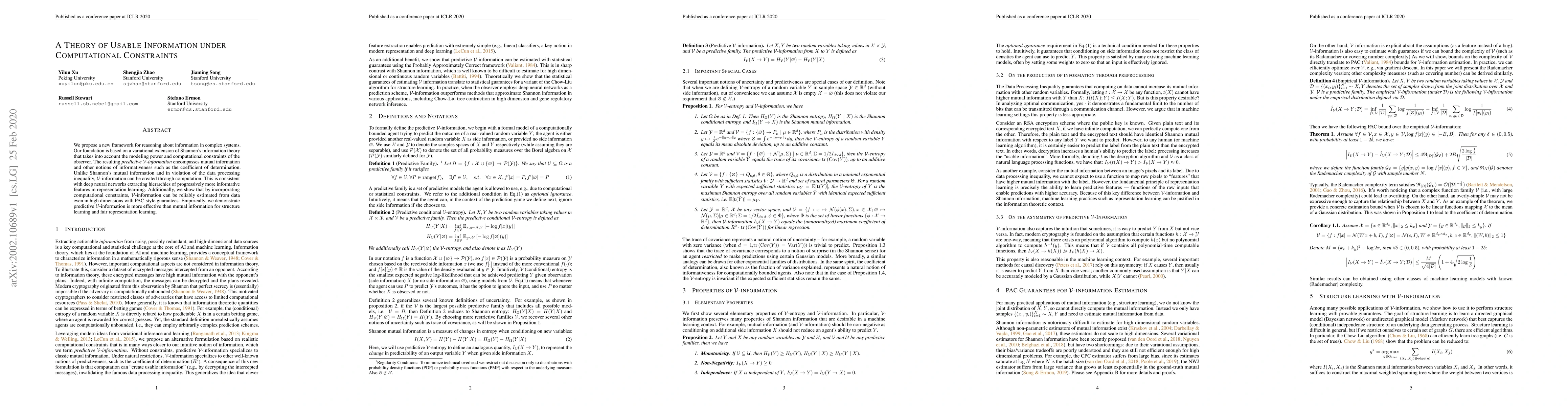 We propose a new framework for reasoning about information in complex systems. Our foundation is based on a variational extension of Shannon's information theory that takes into account the modeling power and computational constraints of the observer. The resulting \emph{predictive $\mathcal{V}$-information} encompasses mutual information and other notions of informativeness such as the coefficient of determination. Unlike Shannon's mutual information and in violation of the data processing inequality, $\mathcal{V}$-information can be created through computation. This is consistent with deep neural networks extracting hierarchies of progressively more informative features in representation learning. Additionally, we show that by incorporating computational constraints, $\mathcal{V}$-information can be reliably estimated from data even in high dimensions with PAC-style guarantees. Empirically, we demonstrate predictive $\mathcal{V}$-information is more effective than mutual information for structure learning and fair representation learning.