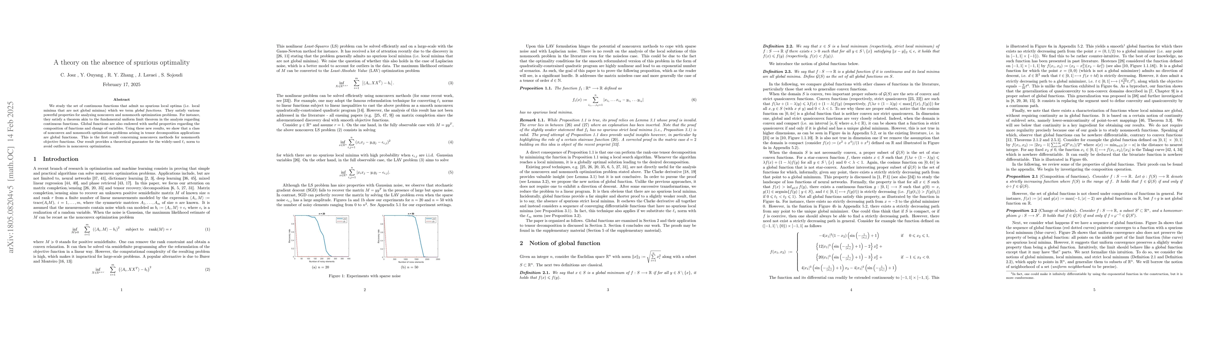 This paper introduces the concept of "global functions" to analyze nonconvex and nonsmooth optimization, ensuring the absence of spurious local optima. It demonstrates that certain nonconvex optimization problems in tensor decomposition are global functions, providing a theoretical basis for the effectiveness of the $\ell_1$ norm in avoiding outliers.