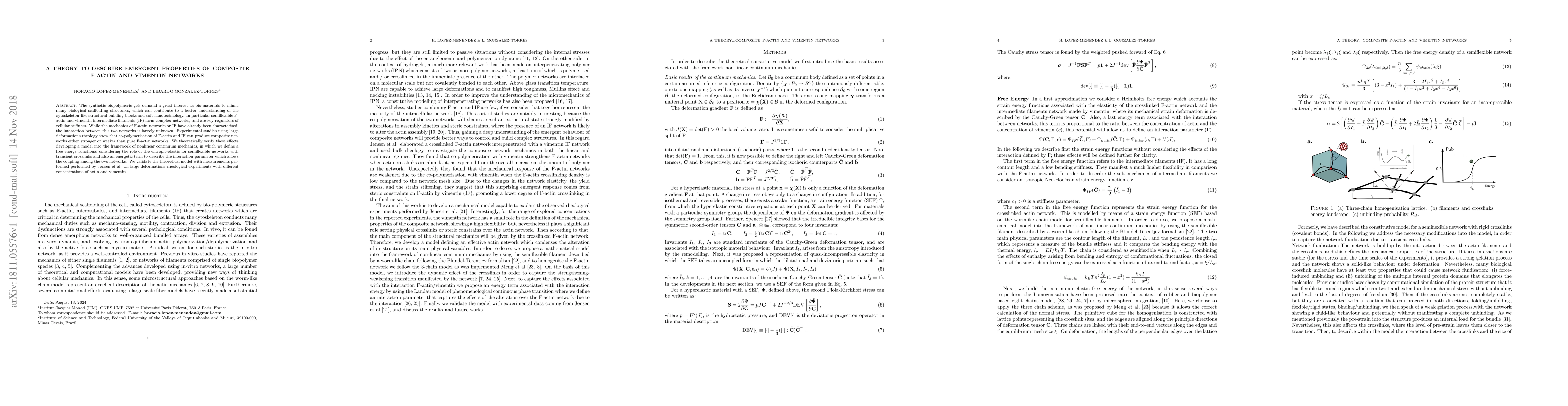 This paper develops a theoretical model to describe emergent properties of composite networks formed by F-actin and vimentin intermediate filaments, using nonlinear continuum mechanics. The model considers entropic elasticity and crosslink interactions, validated by rheological experiments showing varying mechanical properties of co-polymerized networks.