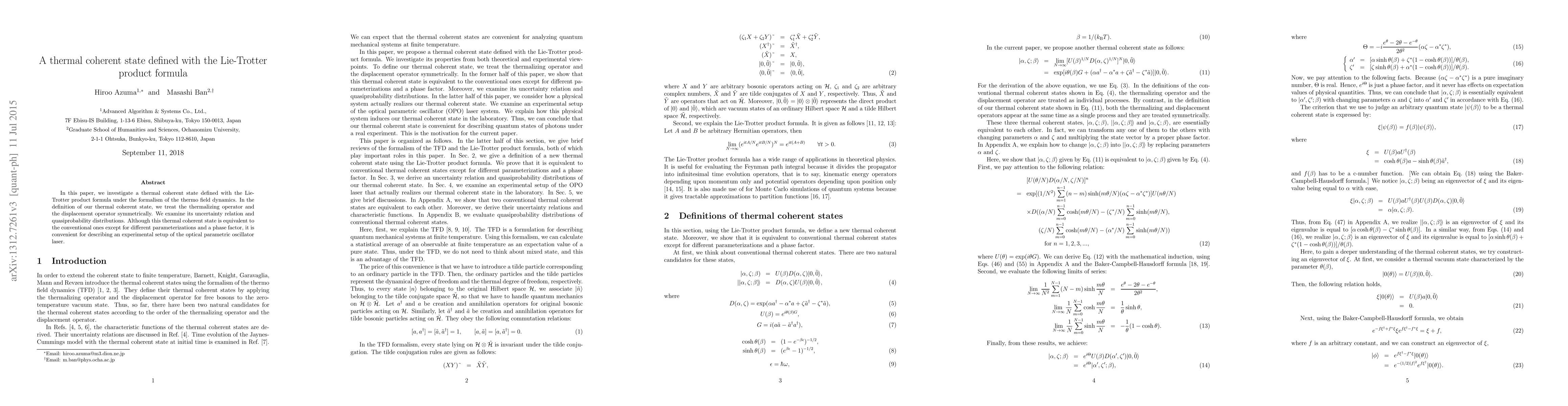 Researchers develop a new thermal coherent state using Lie-Trotter product formula for optical parametric oscillator laser setup, with implications for experimental descriptions.