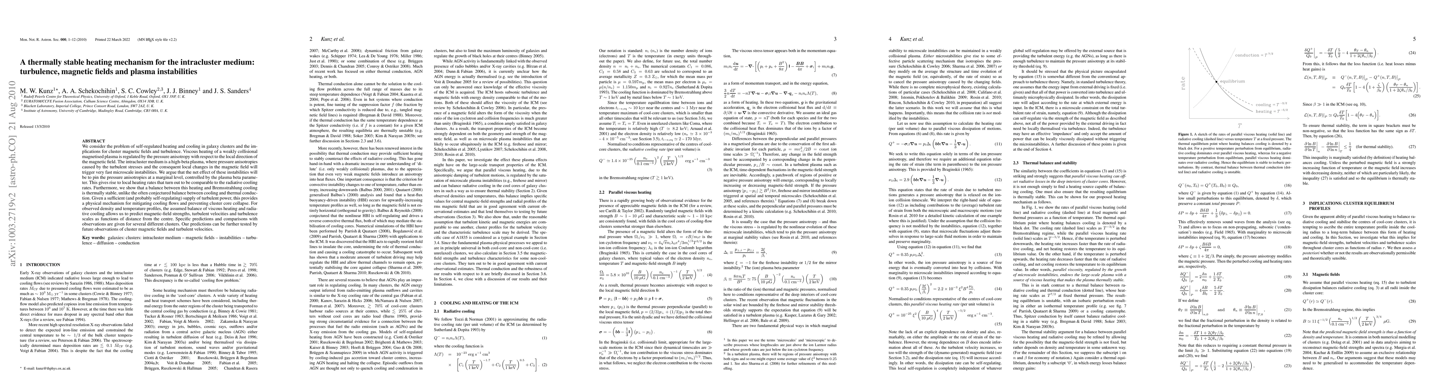 This paper proposes a thermally stable heating mechanism in the intracluster medium driven by turbulence, magnetic fields, and plasma instabilities, balancing viscous heating and radiative cooling. It predicts magnetic-field strengths and turbulence scales based on density and temperature profiles, offering a self-regulating solution to cooling flows and cluster core collapse.