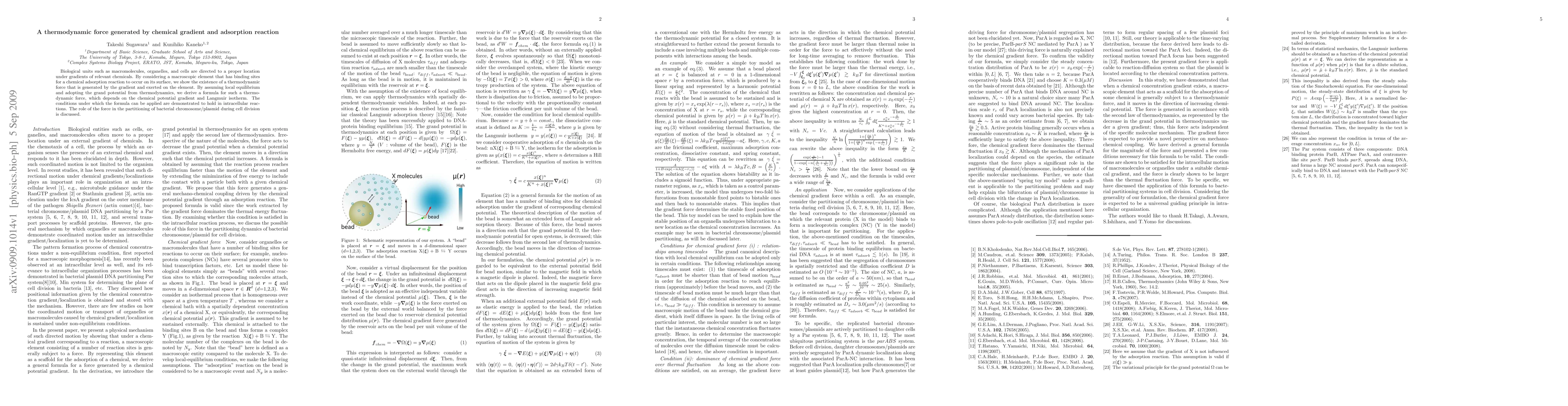 Biological units such as macromolecules, organelles, and cells are directed to a proper location under gradients of relevant chemicals. By considering a macroscopic element that has binding sites for a chemical adsorption reaction to occur on its surface, we show the existence of a thermodynamic force that is generated by the gradient and exerted on the element. By assuming local equilibrium and adopting the grand potential from thermodynamics, we derive a formula for such a thermodynamic force, which depends on the chemical potential gradient and Langmuir isotherm. The conditions under which the formula can be applied are demonstrated to hold in intracellular reactions. The role of the force in the partitioning of bacterial chromosome/plasmid during cell division is discussed.