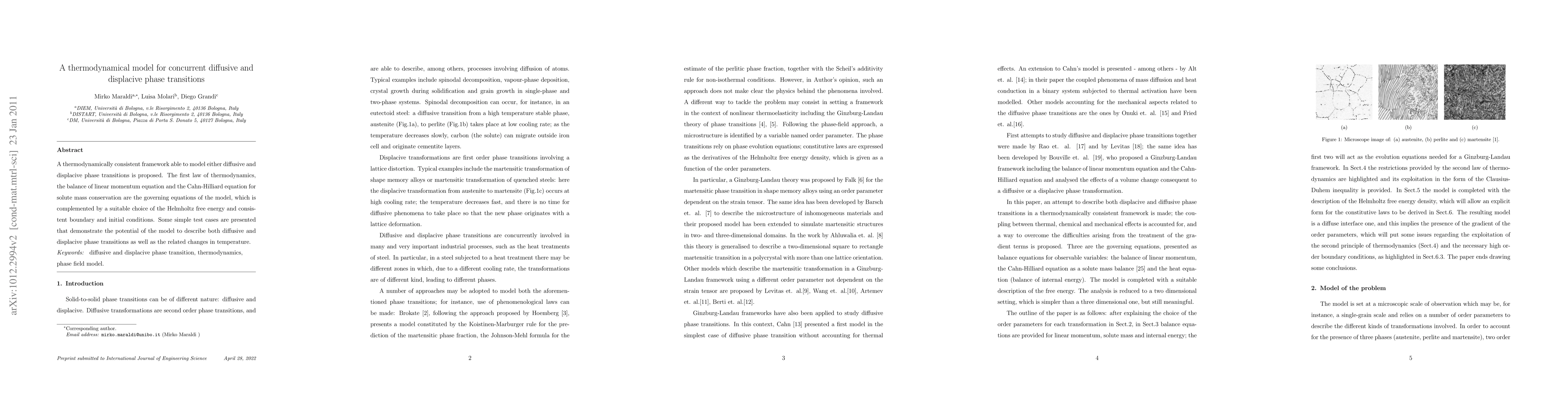 A new thermodynamic model describes phase transitions in materials that involve both diffusion and displacement of atoms, providing a consistent framework for understanding these complex phenomena.