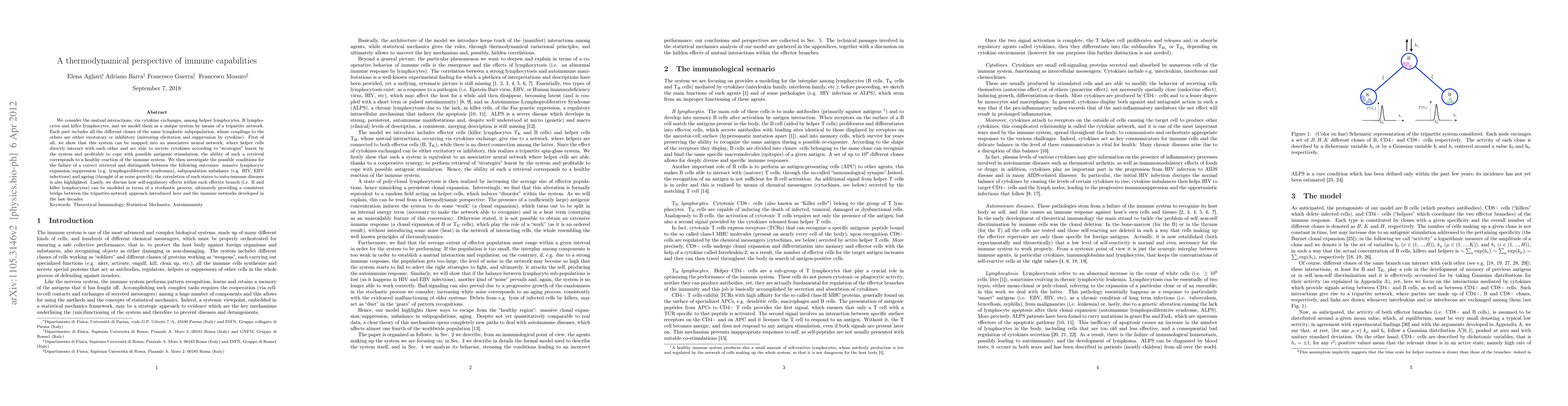 We consider the mutual interactions, via cytokine exchanges, among helper lymphocytes, B lymphocytes and killer lymphocytes, and we model them as a unique system by means of a tripartite network. Each part includes all the different clones of the same lymphatic subpopulation, whose couplings to the others are either excitatory or inhibitory (mirroring elicitation and suppression by cytokine). First of all, we show that this system can be mapped into an associative neural network, where helper cells directly interact with each other and are able to secrete cytokines according to "strategies" learnt by the system and profitable to cope with possible antigenic stimulation; the ability of such a retrieval corresponds to a healthy reaction of the immune system. We then investigate the possible conditions for the failure of a correct retrieval and distinguish between the following outcomes: massive lymphocyte expansion/suppression (e.g. lymphoproliferative syndromes), subpopulation unbalance (e.g. HIV, EBV infections) and ageing (thought of as noise growth); the correlation of such states to auto-immune diseases is also highlighted. Lastly, we discuss how self-regulatory effects within each effector branch (i.e. B and killer lymphocytes) can be modeled in terms of a stochastic process, ultimately providing a consistent bridge between the tripartite-network approach introduced here and the immune networks developed in the last decades.
