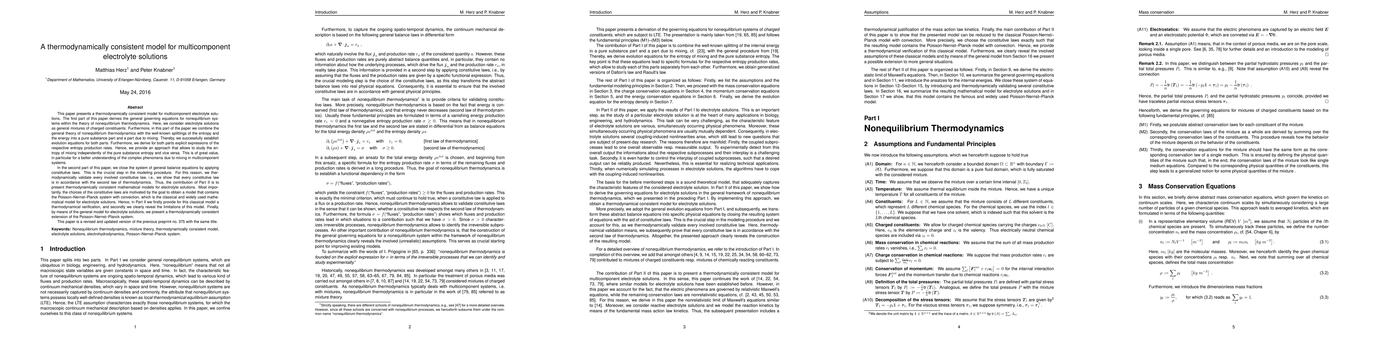 The development of a thermodynamically consistent model for electrolyte solutions, which provides a framework for understanding and predicting their behavior in various industrial applications.